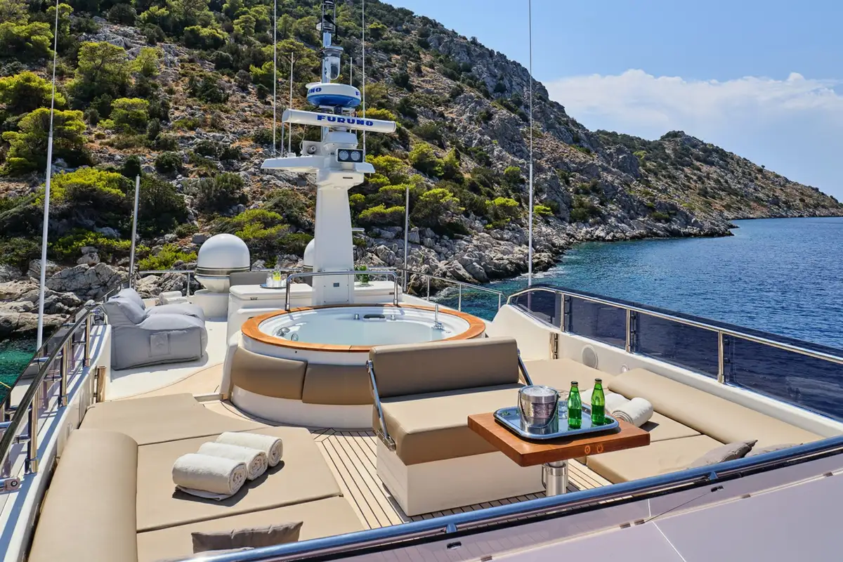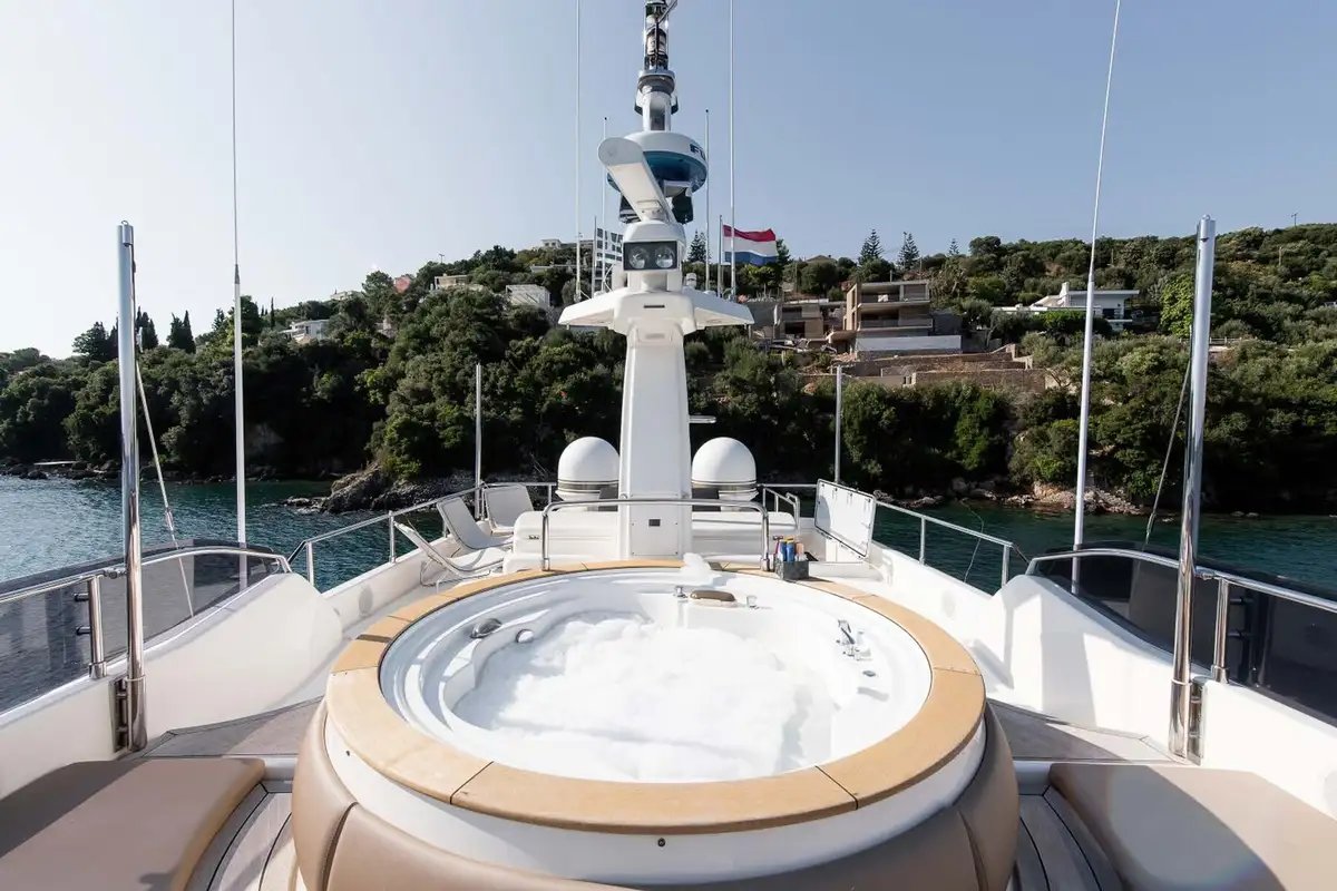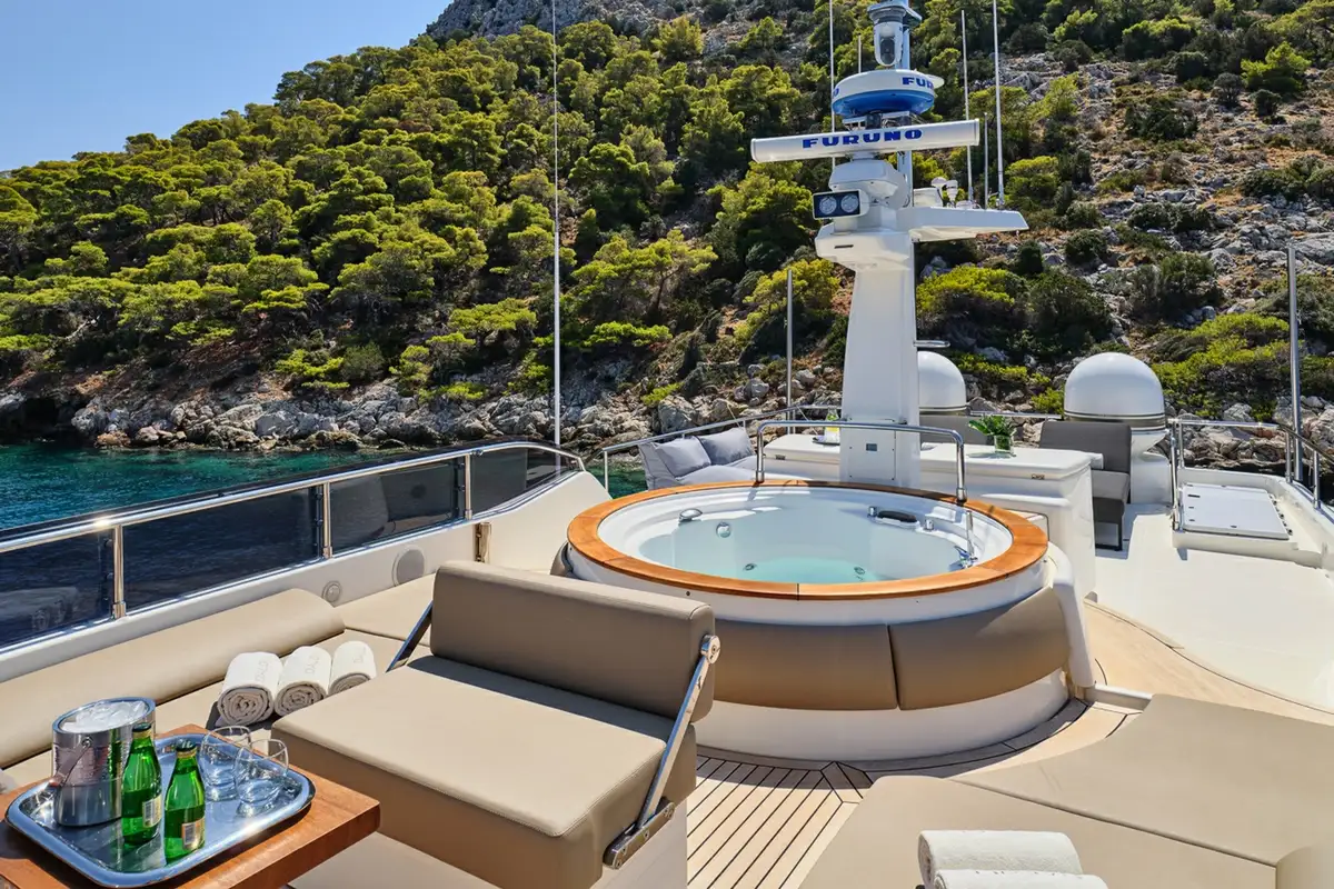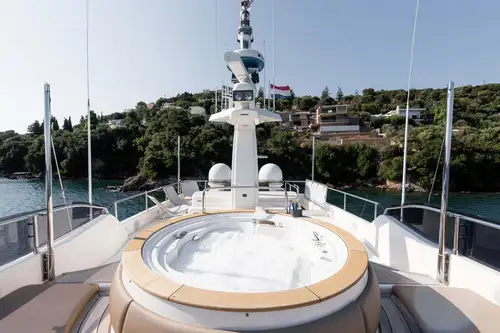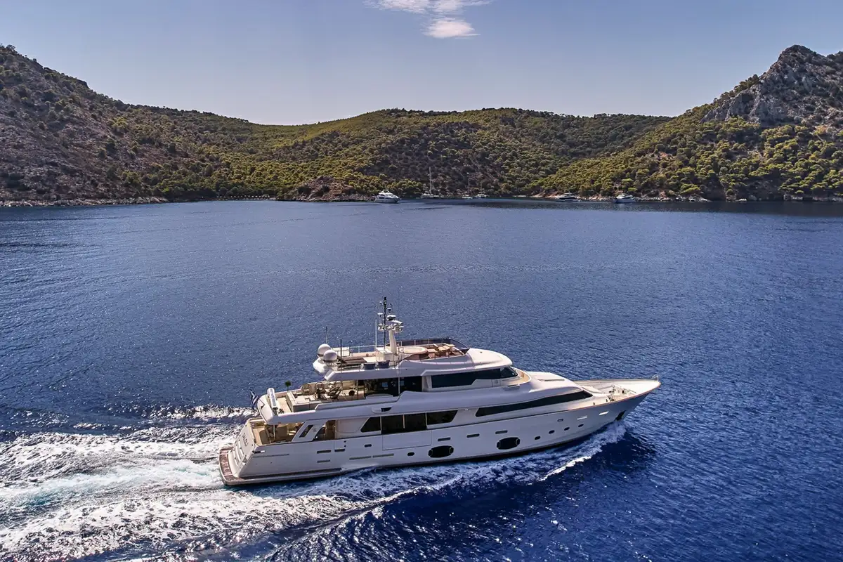 Freshly refitted for the 2025 season and thus available for charter in sparkling condition, DALOLI is a 33m (108ft) motor yacht with tri-deck accommodation, an innovative layout and an excellent range of features. She’s designed to host up to 10 guests in a five-cabin configuration, with a highly experienced crew of seven at your service. It’s a great asset for guests that the whole crew have been working together as a team for many years.