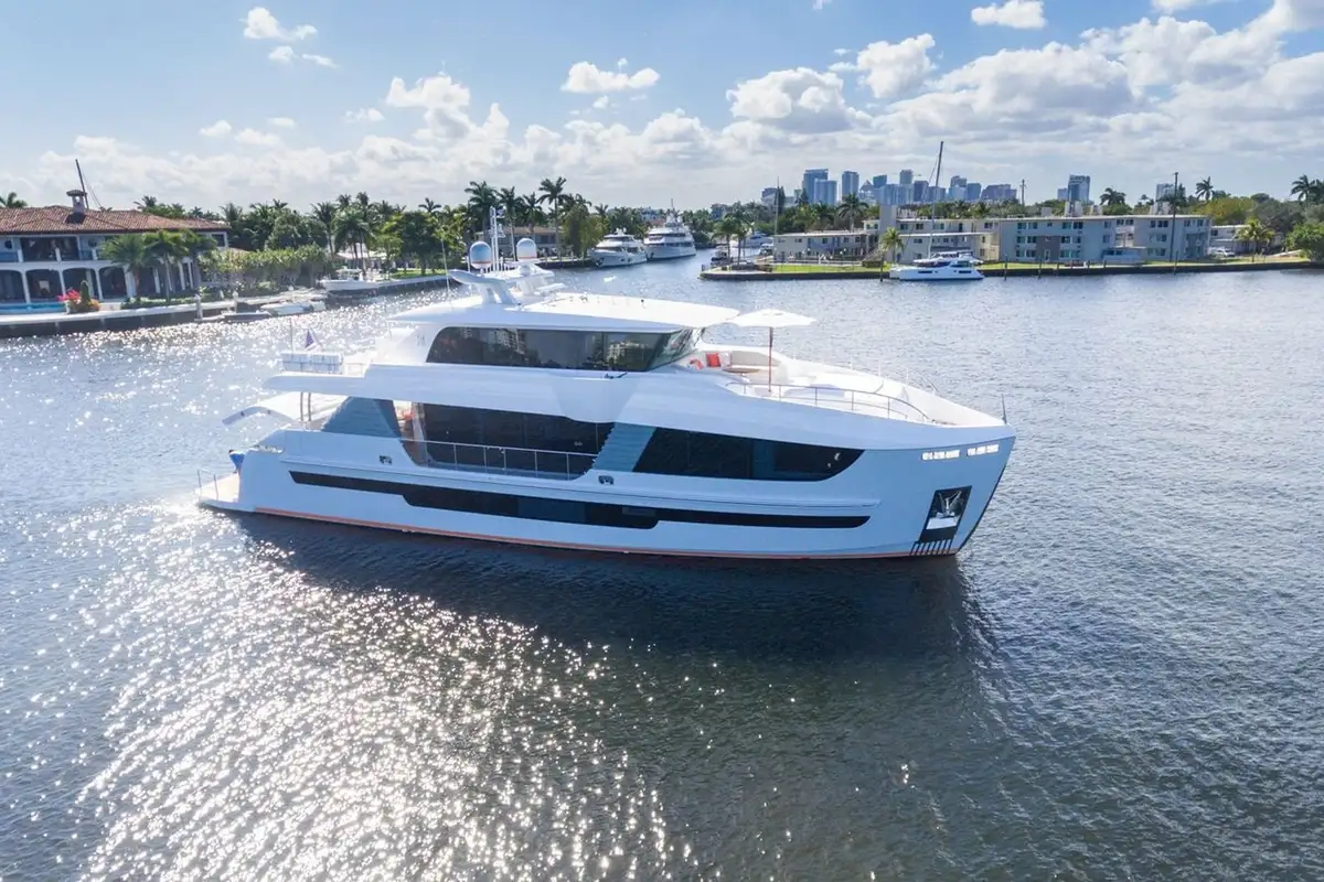 Presented in immaculate condition and newly built in 2020, 91’ 10” (27.99m) Hargrave motor yacht DAY ONE is an ideal boat on which to enjoy a sun-soaked Bahamas charter. Accommodating eight guests in four staterooms, including an on-deck full-beam master with en suite, DAY ONE is one of the newest and nicest yachts in her size range.