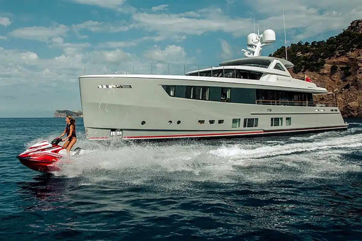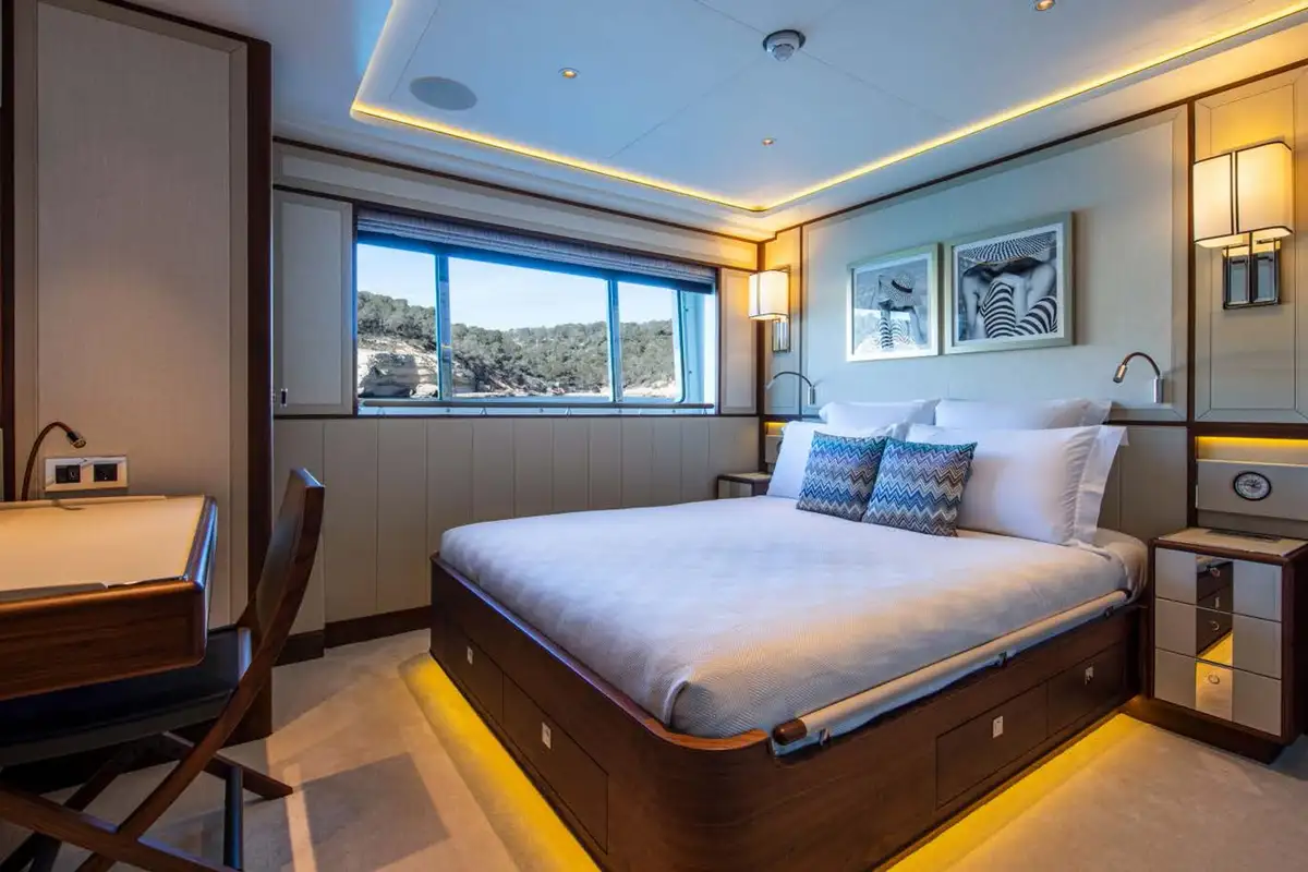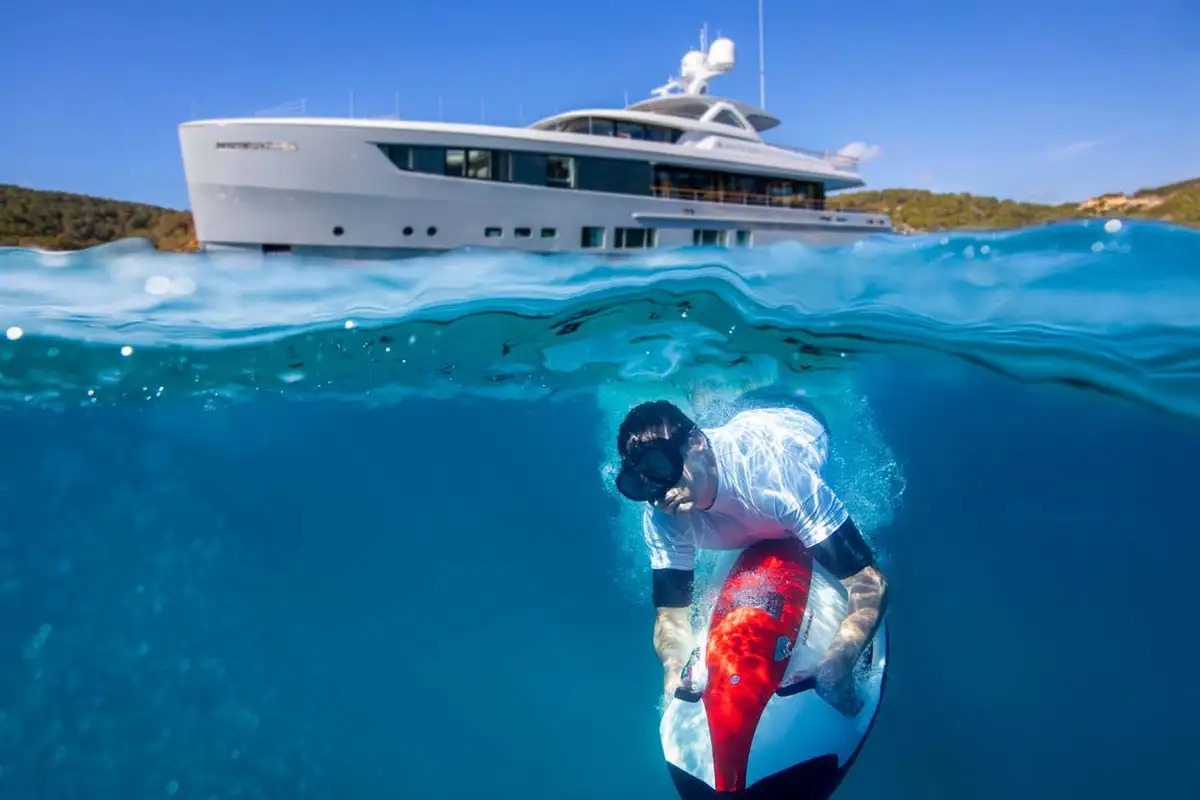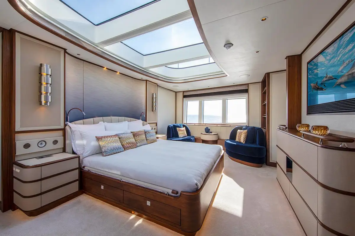 As the blinds over your king-sized berth open, you look to an azure blue sky greeting you through DELTA ONE’s large overbed skylights. It’s another morning on board this fantastic yacht. What will you do today? From the moment you and your guest caught sight of this imposingly beautiful yacht everyone has been besotted by her and all she has to offer.