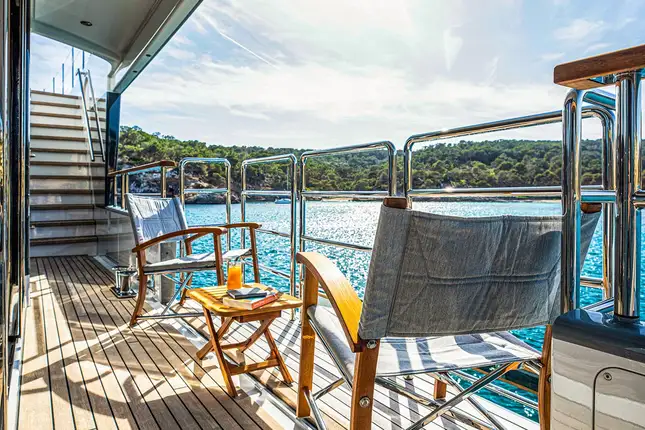 Some of your friends made a bee-line for the sundeck, with its broad sunpad, a jacuzzi, wet bar area and al fresco lounge and dining areas. Your family, however, headed to the lower deck to choose their suites. As you reached the sanctuary of your main deck master suite, you wondered who would have one of two double suites with queen-sized berths and en suite bathrooms, and who would choose the twin-berth suites, with en suite facilities including separate shower compartments.