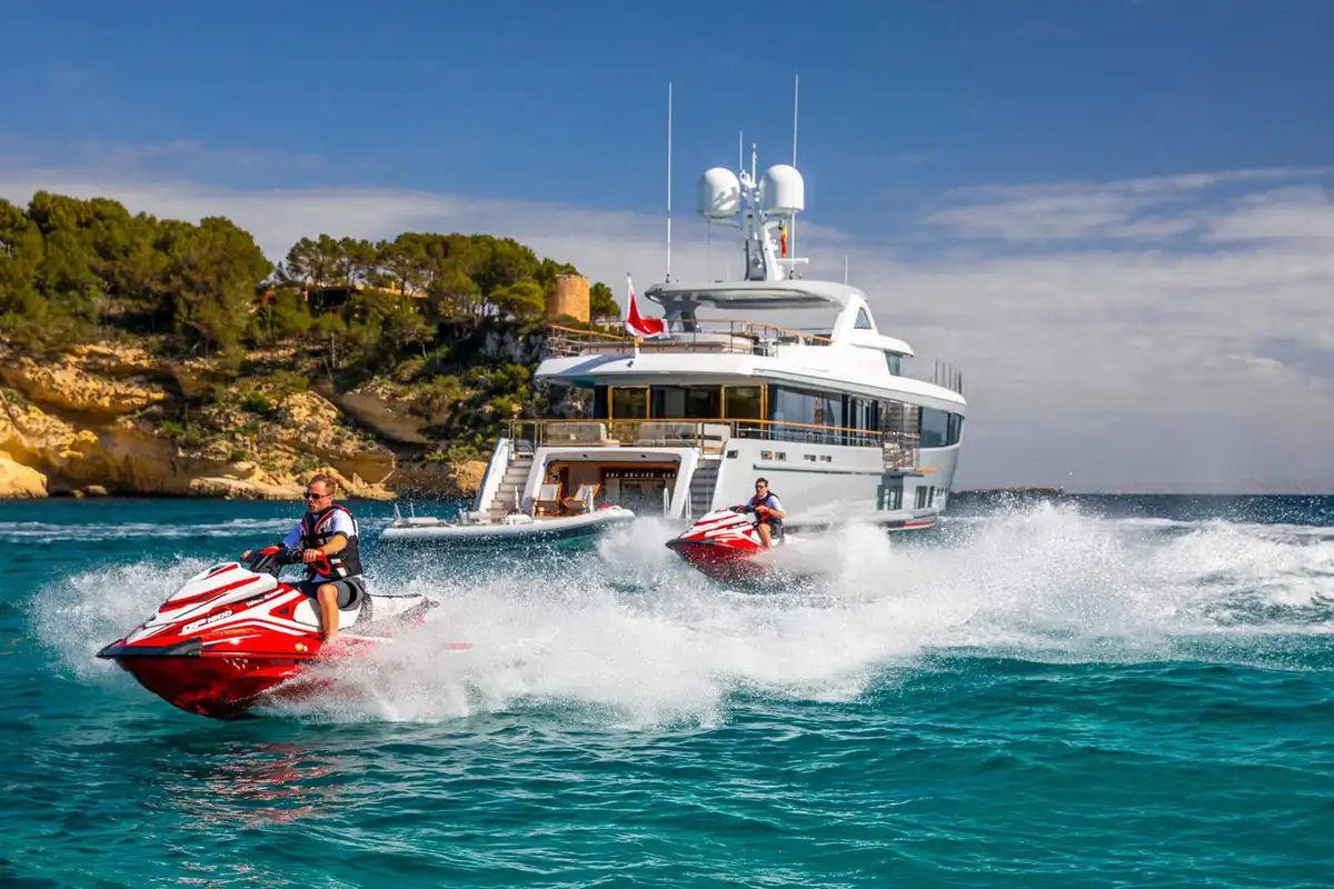 Shared memories of yesterday cause eruptions of laughter amongst you all. What your friends lacked in style on the wakeboards, water skis, and towable inflatables, they made up in enthusiasm – and they were very enthusiastic! Others preferred a sedate time on the SUPs and paddling the kayak, but everyone agreed the jetskis and SeaBobs had been tremendous fun.