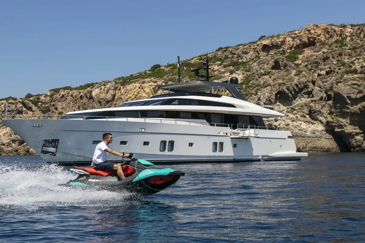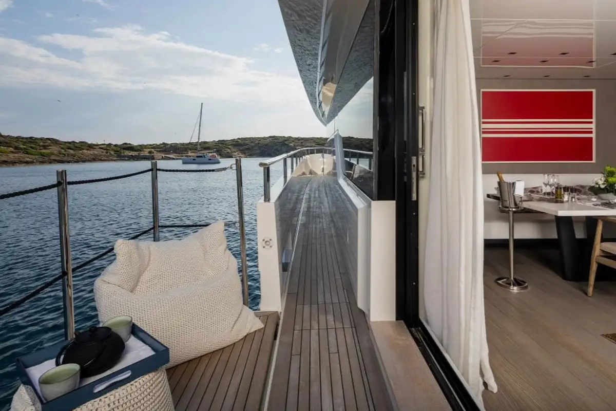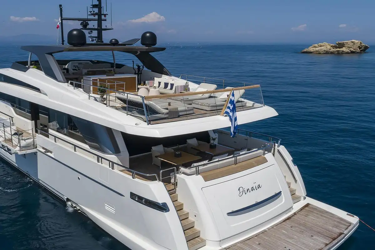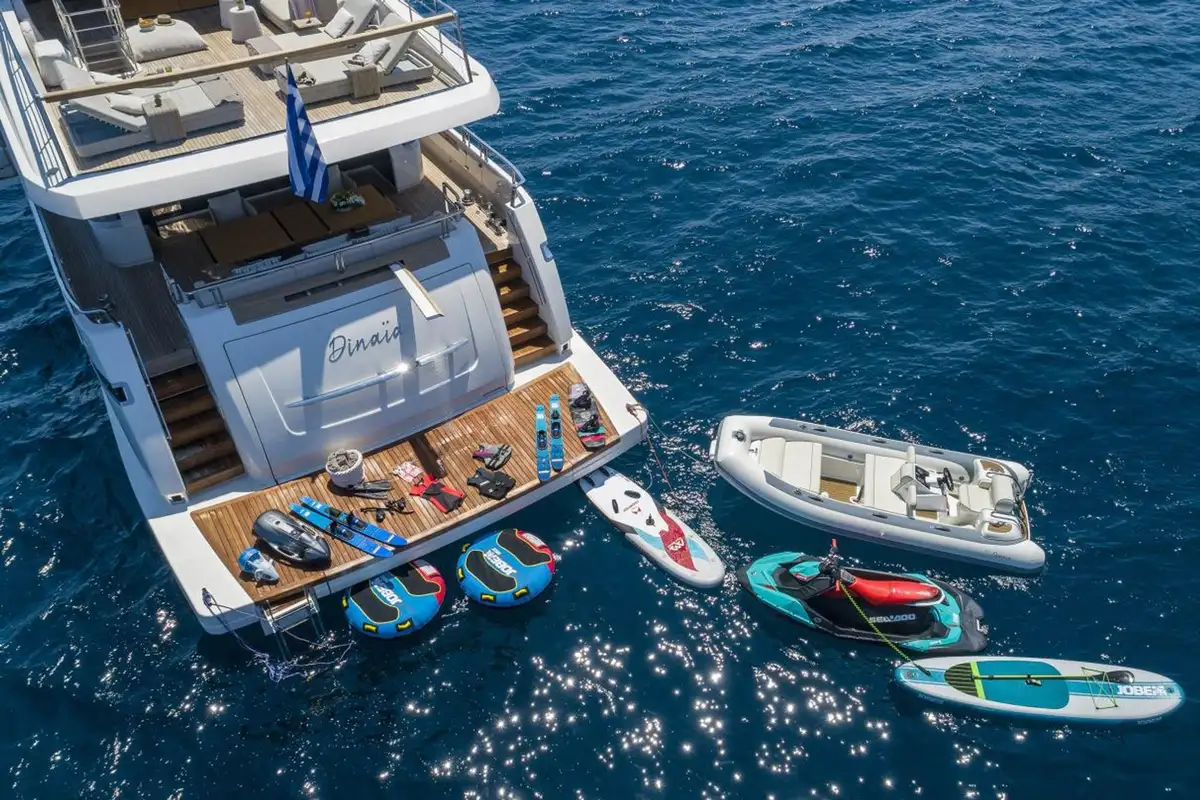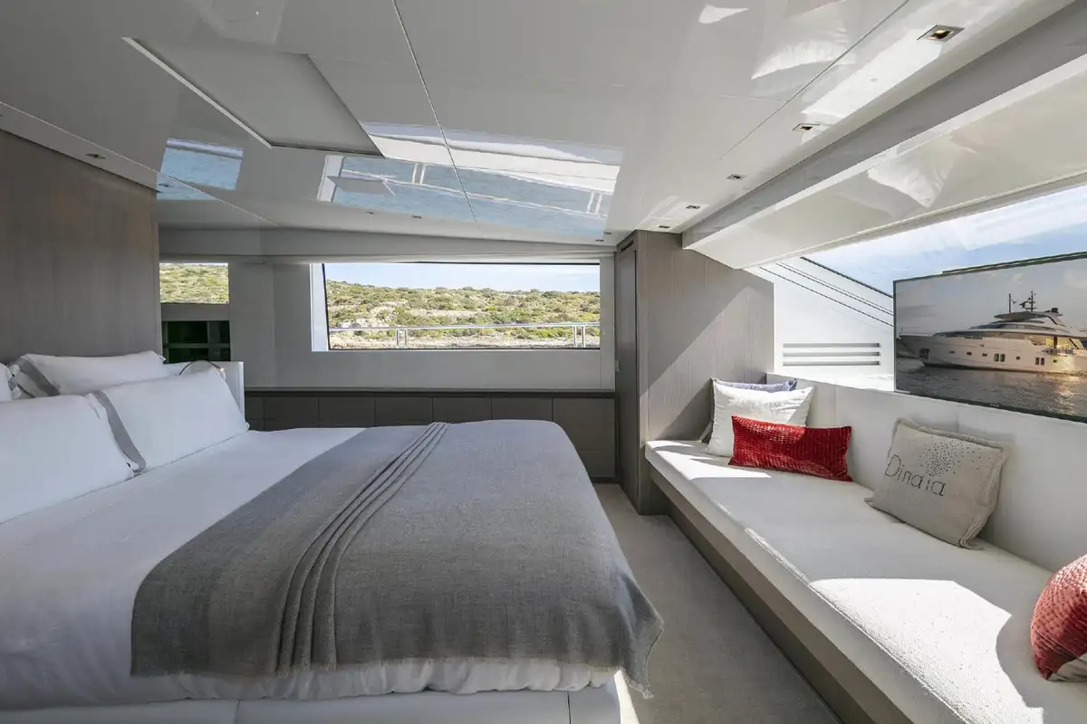 Built by the Italian shipyard Sanlorenzo and launched in 2018, with modern and elegant interior design by Amellie Gillier. DINAIA is able to accommodate up to ten guests in five staterooms comprising of 1 master suite, 2 VIP staterooms and 2 double cabins.