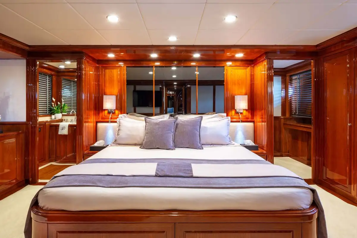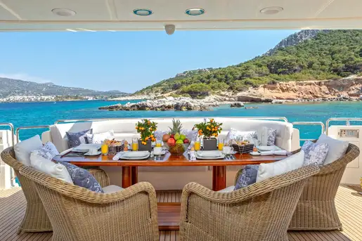 Fresh from a recent refit, DIVINE is waiting to whisk you and your closest friends and family away. Her fast cruising speed of 23 knots will take you further in less time than many other yachts in her class, and her spacious accommodation offers you two full-beam double suites and an additional main deck double suite. This makes DIVINE a superb choice for families and groups alike.
