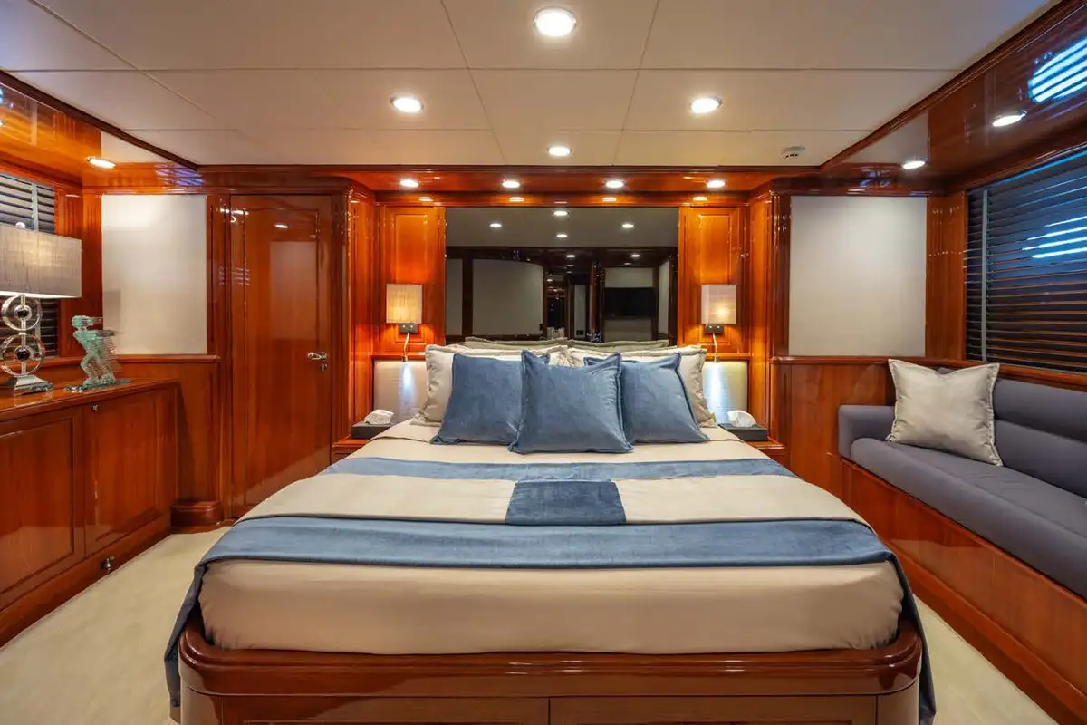 Take time to discover scenery from the comfort of her foredeck forward-facing seating area, her long sun deck, or her beautiful cockpit al fresco formal dining area. When you’re not admiring your surroundings, you all can relax together in the al fresco lounge area on the sun deck with a drink from the bar. Alternatively, destress while sunbathing on the aft deck sun loungers with your closest friends.
