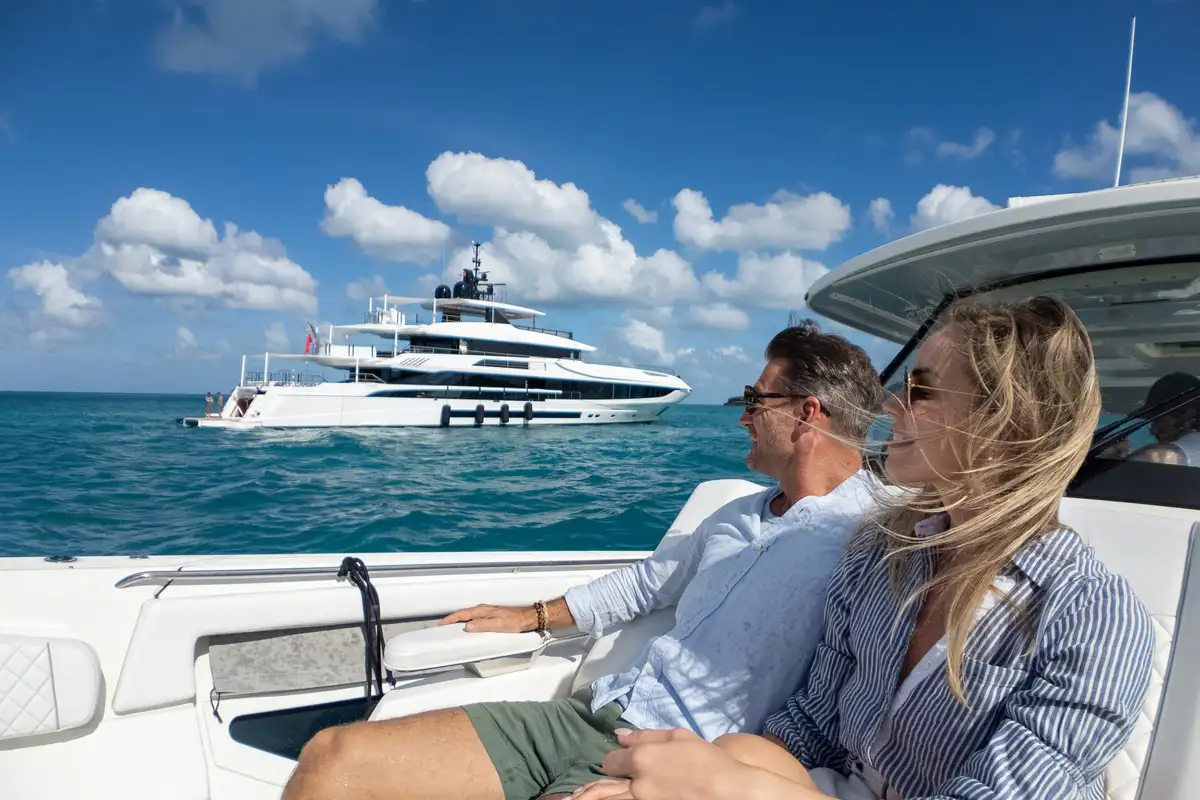 Step aboard DOKINHA, the epitome of modern luxury, where breathtaking design meets unparalleled performance. Launched in 2024 by Overmarine Group and designed by the visionary Alberto Mancini, her sleek exterior lines and sophisticated, contemporary interior promise to redefine your charter experience.