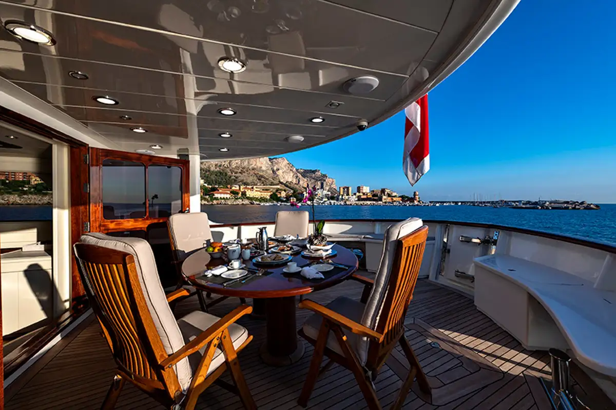 Accessible by tender from your yacht rental to Corfu, Toulas is the gastronomic gem of Agni Bay. With its coastal tables and refined menus, it’s the perfect evening destination.