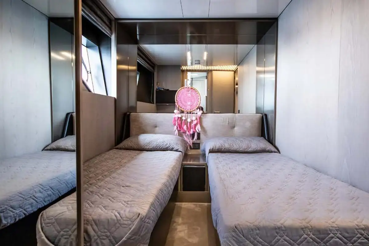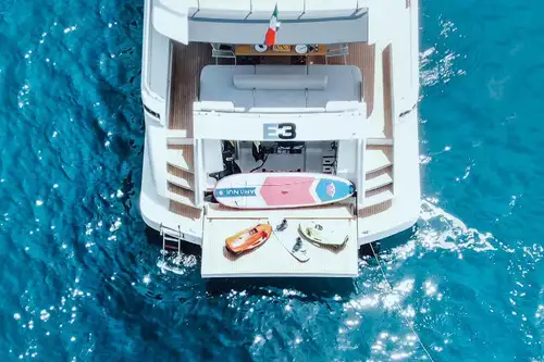 With an experienced crew of 4, E3 promises unparalleled service, expert guidance, and entertainment. The yacht is also equipped with an array of water toys so as to to thrill any superyacht enthusiast.