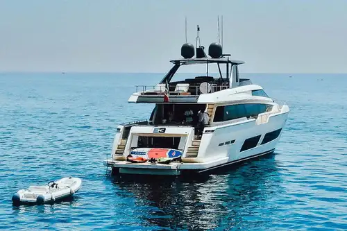 The Ferretti Yachts 850 "E3" is a fusion of power, beauty, and unrivalled luxury. With its elegant design, this yacht sets a new standard in yachting.