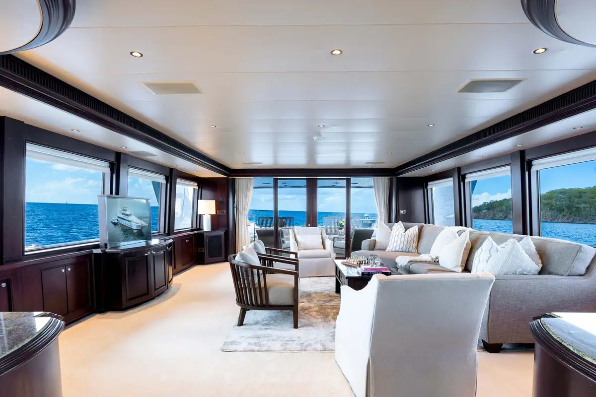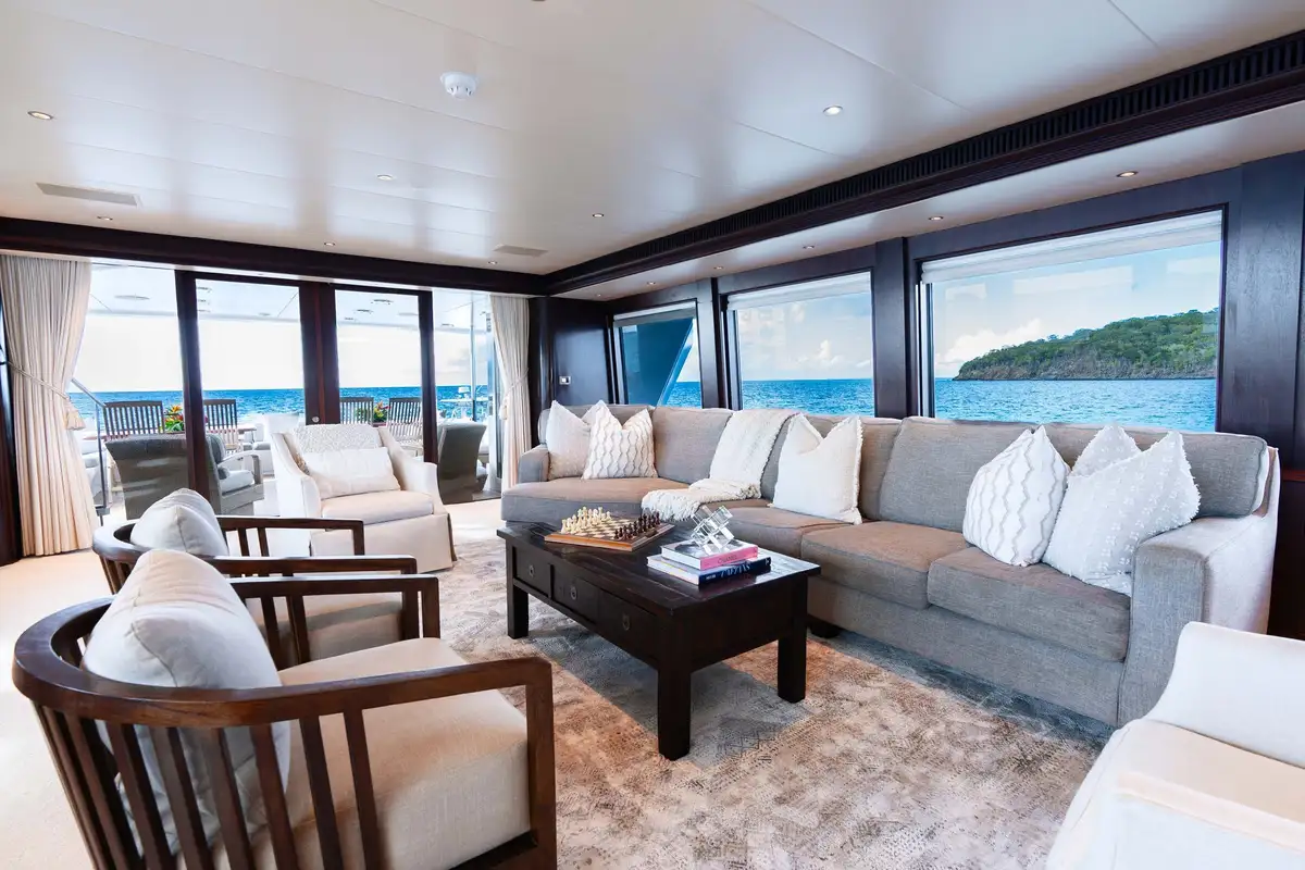 Ascend to the upper deck to discover an area dedicated to al fresco dining and sun lounging. Inside, a stylish sky lounge with a bar area and plush seating provides a refined space to enjoy a cocktail or catch up on conversation.
