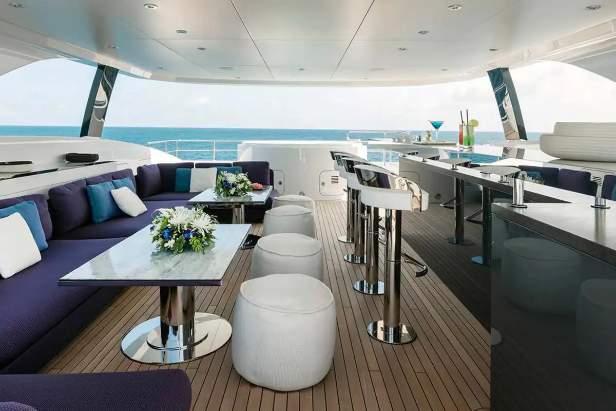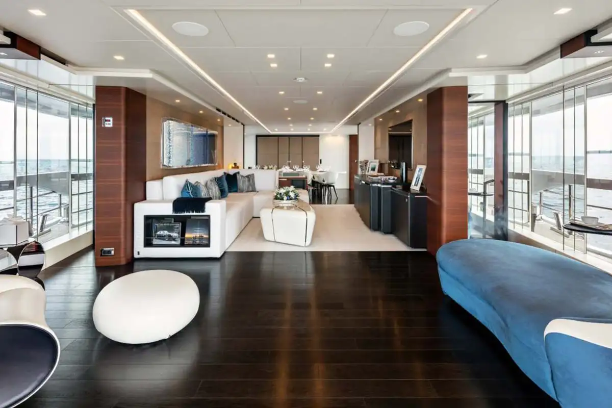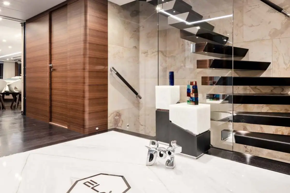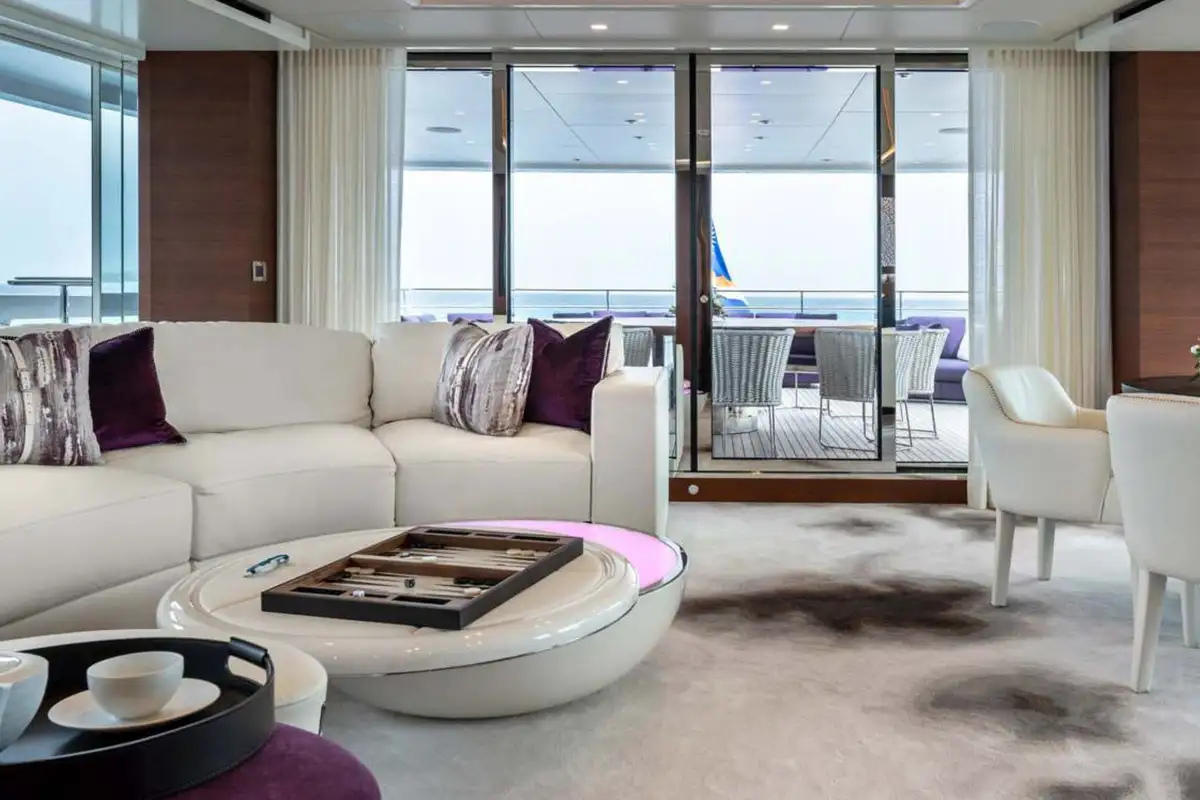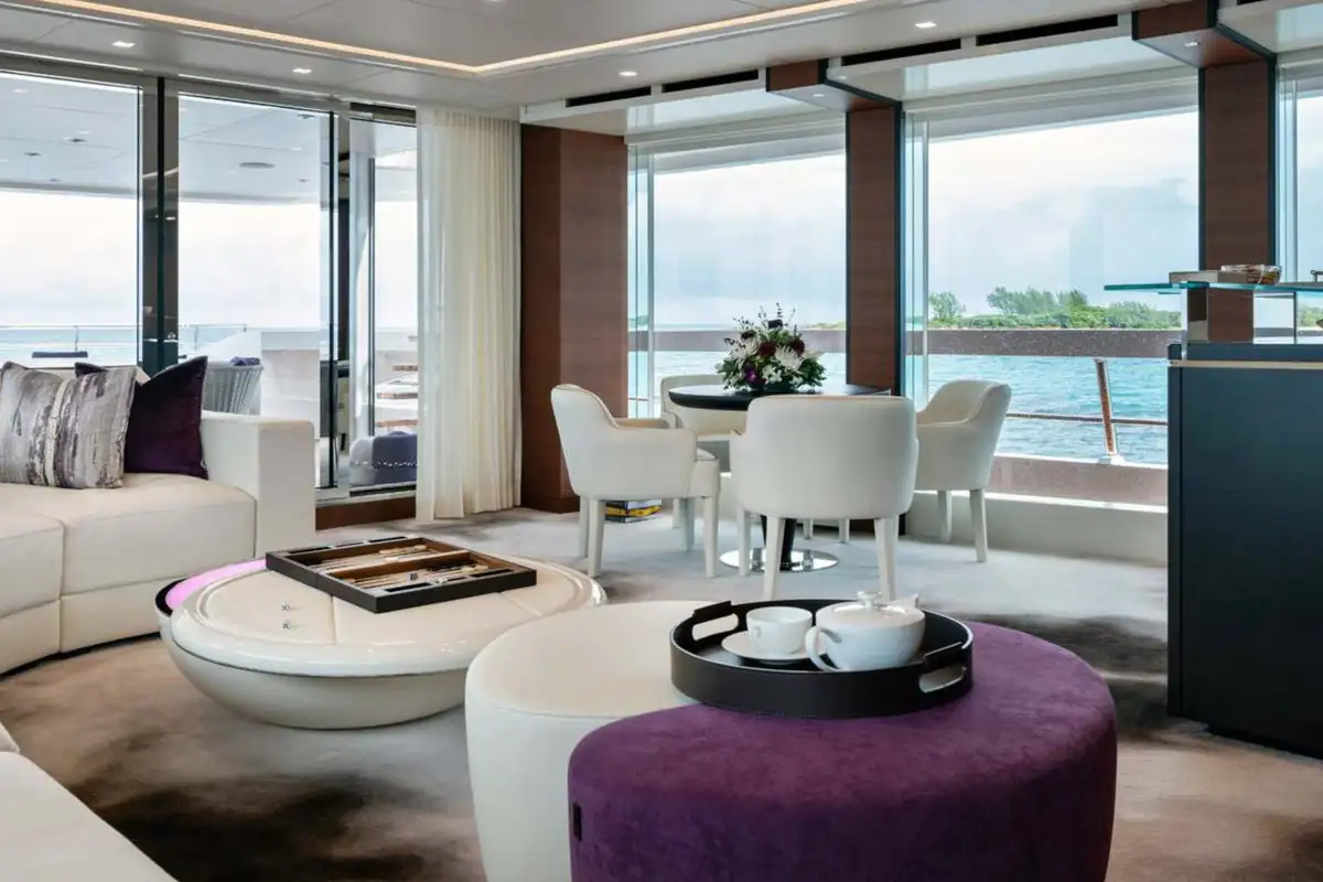 For the best views, though, head to ELA’s vast sun deck where you can enjoy the plush sun loungers, al fresco lounge area, jacuzzi and bar area. If you’d rather be close to the sea, head down to the swim platform with its extendable diving / subsea platform enabling you to dive elegantly in or walk effortlessly out of the water.