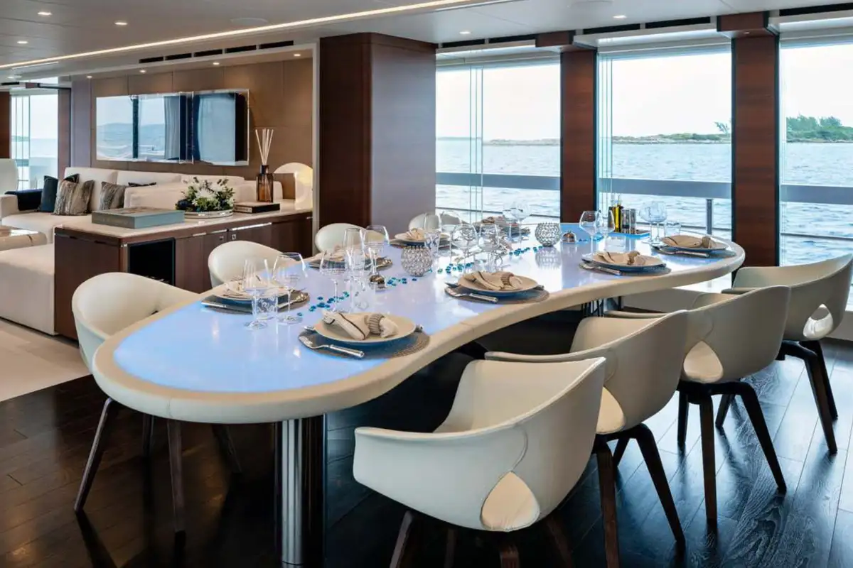 As one expects from a new build, ELA is presented in excellent condition and has everything you could require for your charter. Whether you want to relax on the foredeck sunpads to watch a blockbuster on the big-screen bow cinema screen or spend some time in the onboard gym and then wind down in the sauna next door, it’s your choice.