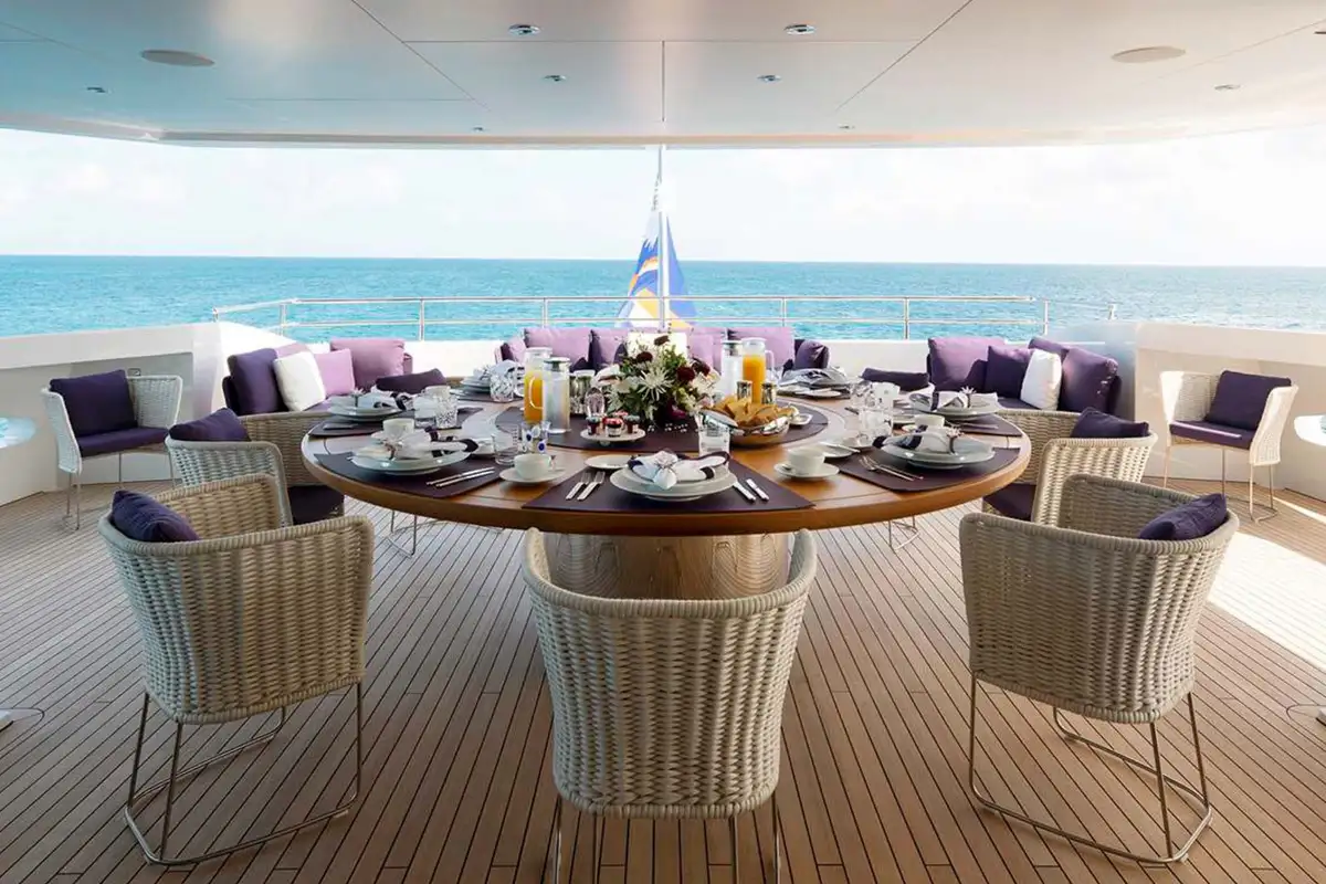 The upper aft deck has a wonderful al fresco lounge and dining area. Here you can delight in the cuisine from ELA’s chef. There are two lounge areas onboard. A few short steps from the al fresco dining area is the upper sky lounge where you can relax in the bar area or watch a film on the 65in TV. The main deck saloon, too, has a 65in TV and a lavish lounge and formal dining area for evening meals to impress you and your guests.