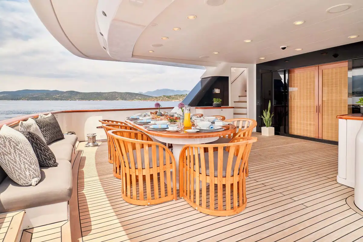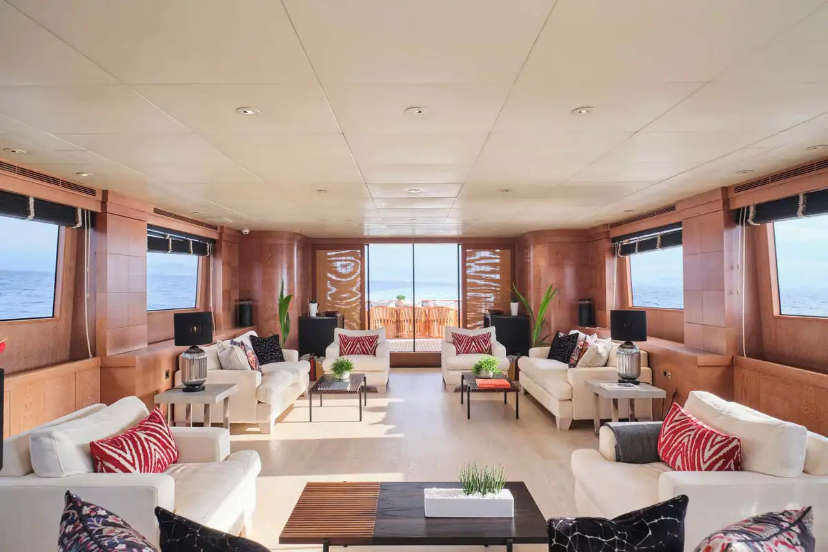 ELEMENT’s sky lounge offers you the ideal spot to relax inside. With a wet bar area, sofa seating and TV/AV facilities, it’s the place you’ll feel cool and relaxed. The main deck saloon gives you an elegant area to gather, ready for chef to delight you with a gourmet menu.