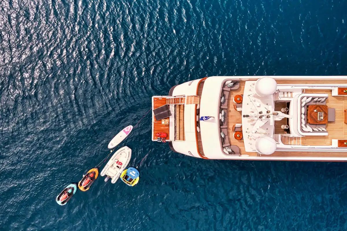 ELEMENT has a 10m Intrepid fast tender ready to whisk you and your party to local harbours, villages, bays or beaches at a moment’s notice. When not exploring ashore, your party can have RYA instruction to use the yacht’s jetskis and waverunners, while others will enjoy the inflatable tow toys.