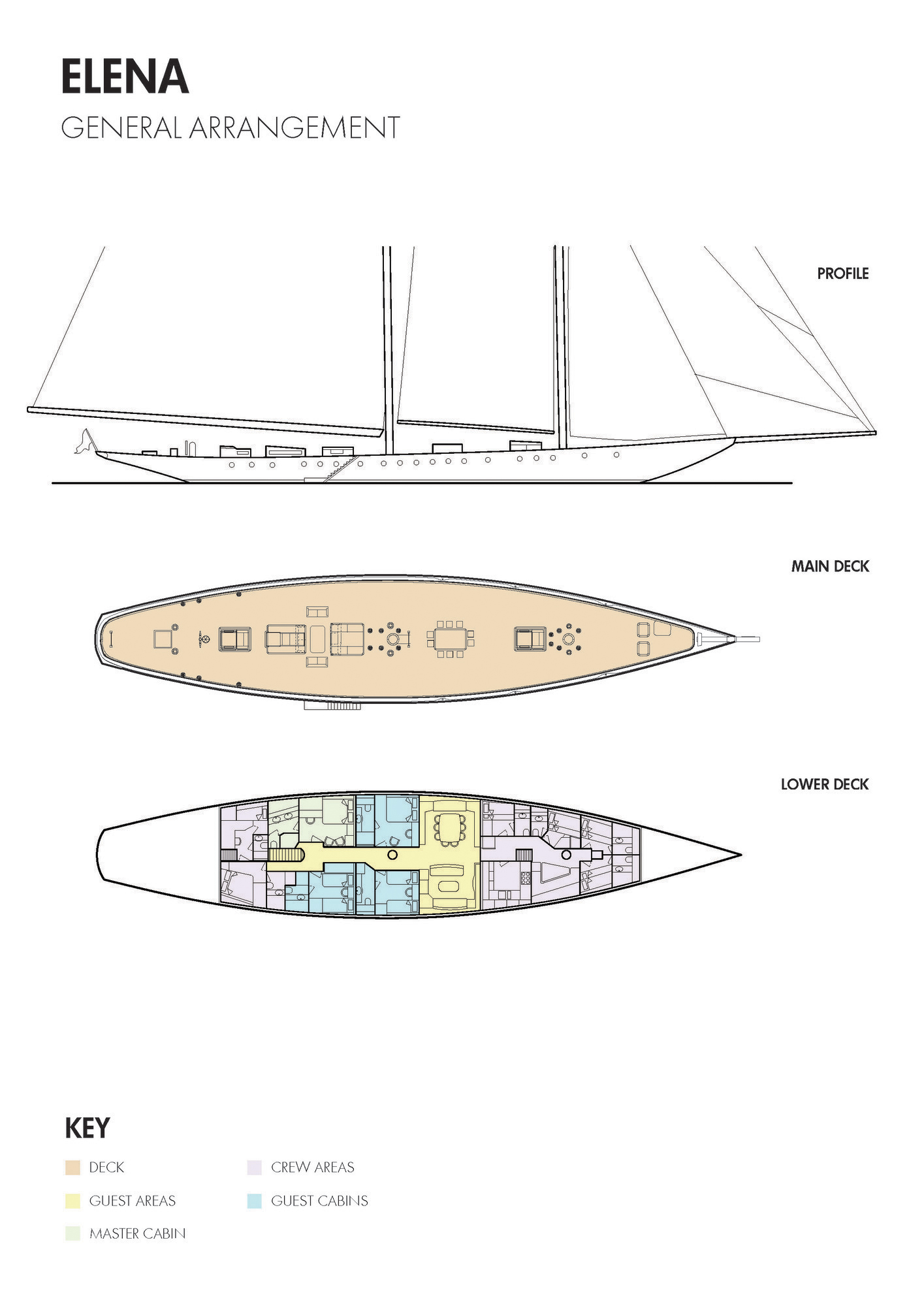 Regardless of her vintage feel and appearance, ELENA offers all the modern cons including full entertainment systems and AV equipment. A good range of watertoys is available for the sporty guests while others can relax on deck and in the sun on the various sun pads.