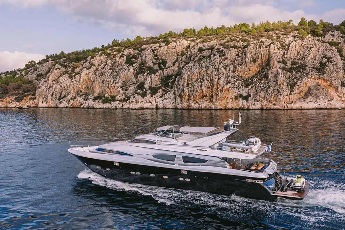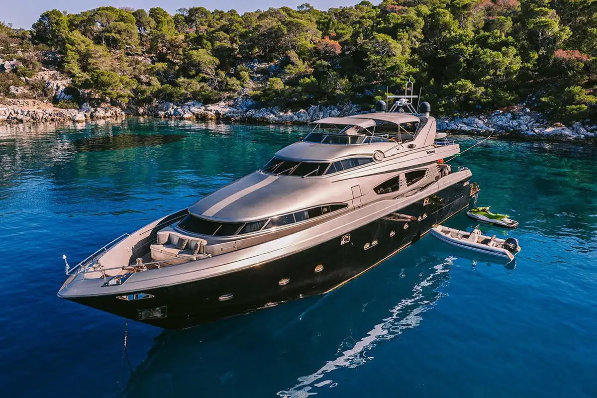 With sleek lines, a silver superstructure, and confident Italian styling, ELVI is a 30m (99ft) Posillipo Technema 95S that turns heads at every port. Built in 2006 and refitted in 2021 with continued upgrades through 2024, she offers performance, ease, and contemporary elegance – ideal for fast-paced itineraries along the Mediterranean coast.