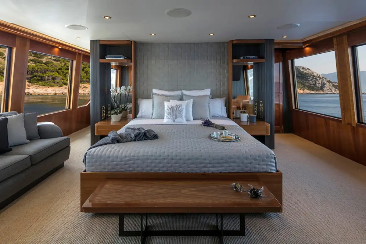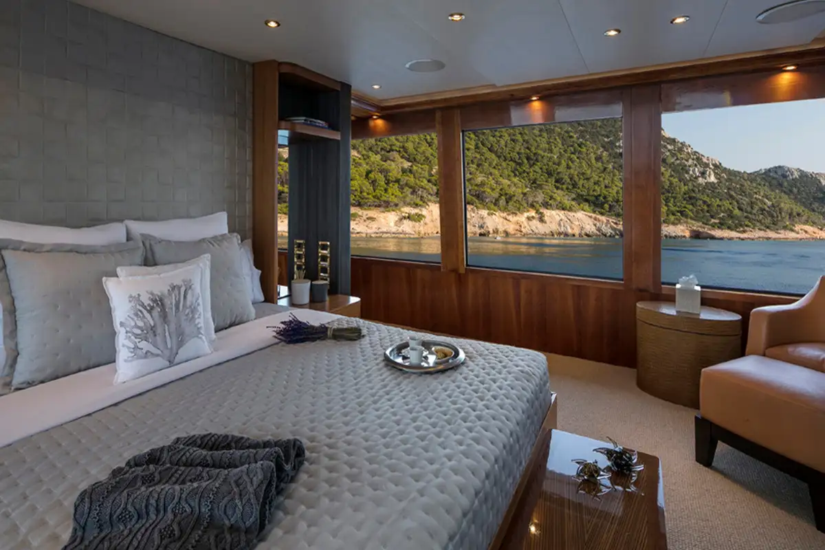 The yacht’s assortment of water toys is to be admired, from jetsurfs and flyboards to a four-person sofa, and even a removable, inflatable swimming platform to create your own private, floating island. For guests with limited mobility, the additional inflatable steps make entering the water enjoyable for all.
