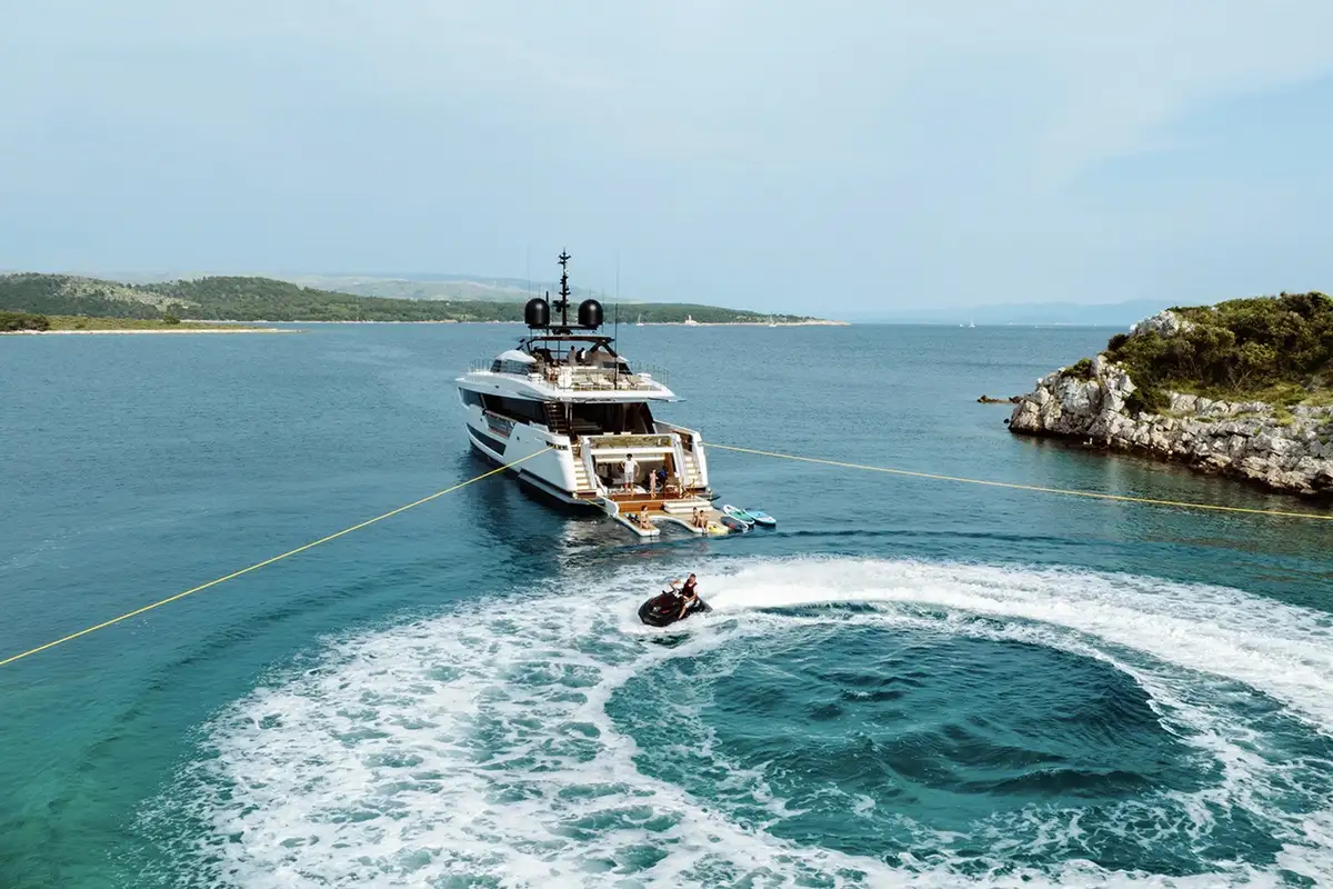 Delivered just two years ago and still in sparkling, pristine condition, EROLIA is a stunning 38m (125ft) Custom Line yacht with sharp contemporary looks that hint at her exceptional performance. Based in Croatia, she is an excellent choice if you’re looking for a charter holiday exploring the beautiful isles of the Adriatic Sea with no compromises on speed, luxury or style.