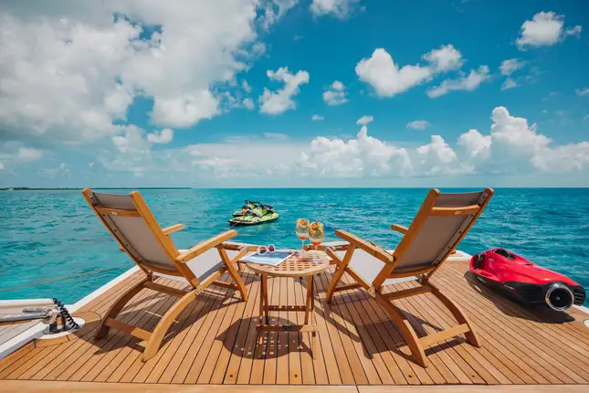 TOn deck, EROS invites guests to indulge in a range of exquisitely designed spaces, from the sun-drenched sundeck with its jacuzzi and bar to the elegant bridge deck dining area and the inviting beach club just steps from the sea. For those with a sense of adventure, the yacht offers an extraordinary selection of water activities. Whether you're zipping across the water, diving beneath the surface, or enjoying a relaxing paddle, the array of onboard toys and equipment ensures there’s never a dull moment. With endless ways to explore and unwind, and a crew of seven dedicated to delivering impeccable service, EROS is the perfect setting for an unforgettable escape on the water.