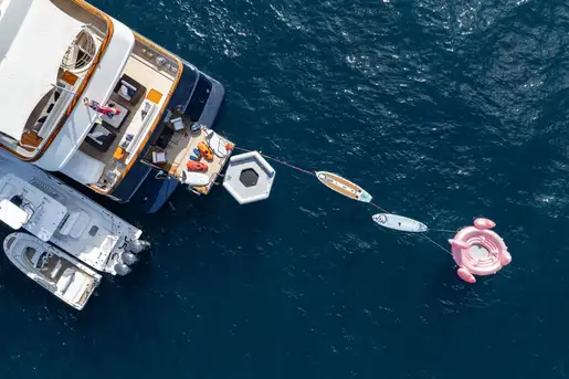 When you are at anchor, the crew can set up the inflatable platform astern that acts as a jetty for your fleet of water toys. Plus, there’s a waterside that can be put in place from the sun deck to the sea, to provide hours of fun for children – big and small!