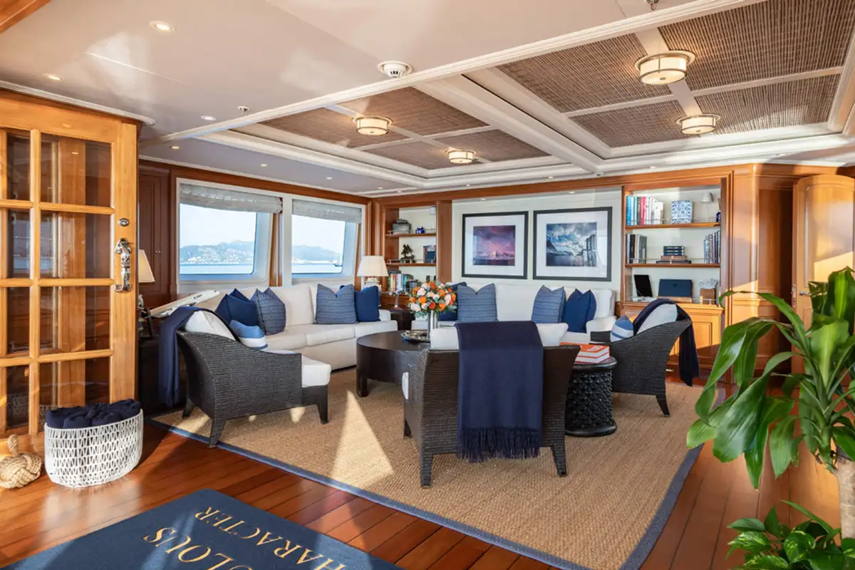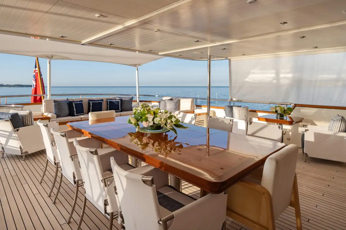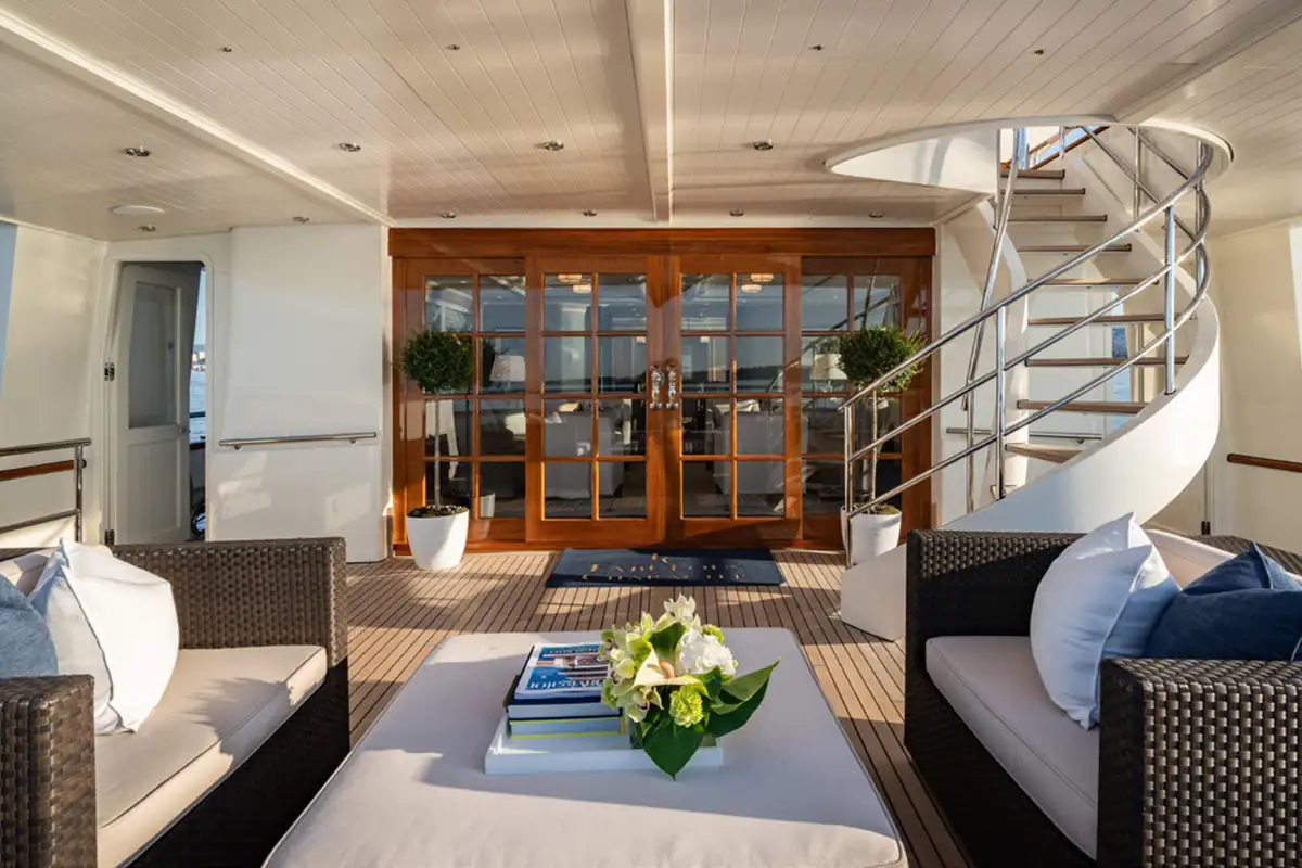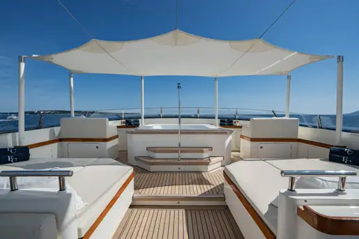 Built by Holland Jachbouw in 2010 for an experienced yacht owner, every detail has been considered. When you step inside you will find a light and fresh décor that creates an informal and yet refined atmosphere. There are five bedroom cabins, with the full-beam master suite forward on the main deck. For your meals, you can choose to eat inside in the main deck dining room, or on the bridge deck for an al fresco meal with views of your anchorage.