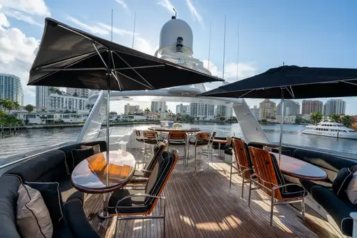 The sun deck is arranged for leisurely days in warm weather, with a raised centreline jacuzzi flanked by inboard-facing dinettes. Further aft, a wet bar and grill create a natural gathering point for light bites and champagne under the sun or stars. With al fresco dining options on all decks and a wide selection of watersports equipment suitable for all ages, FAVOR delivers a splendid and considered charter experience.