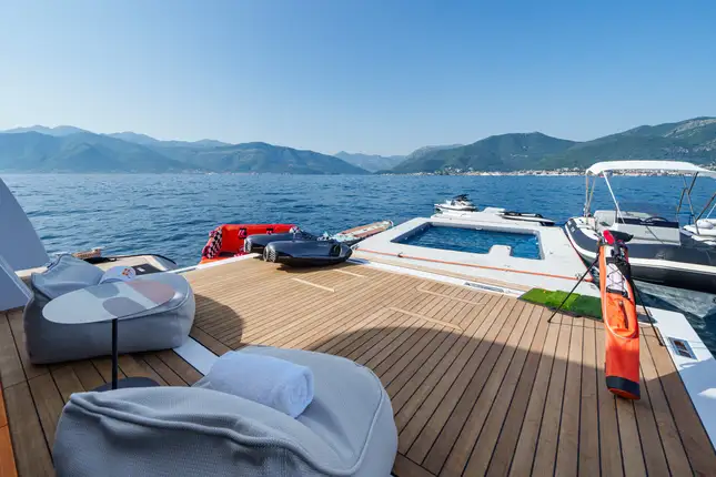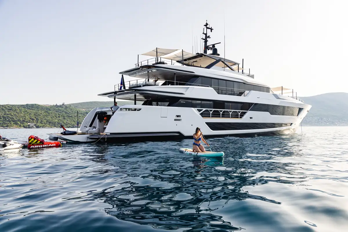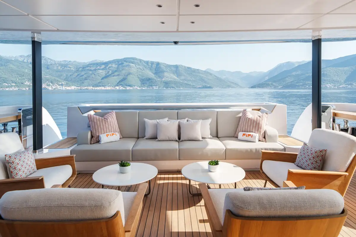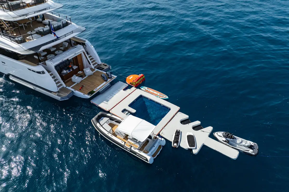 Designed with both luxury and practicality in mind, FIFI features thoughtful touches like floor-to-ceiling cascading doors, expansive lounging areas and a fold-down transom that transforms the swim platform into a beach club complete with a floating dock. With a fun and charismatic crew of seven who excel at creating memorable experiences, FIFI ensures every moment onboard is extraordinary.
