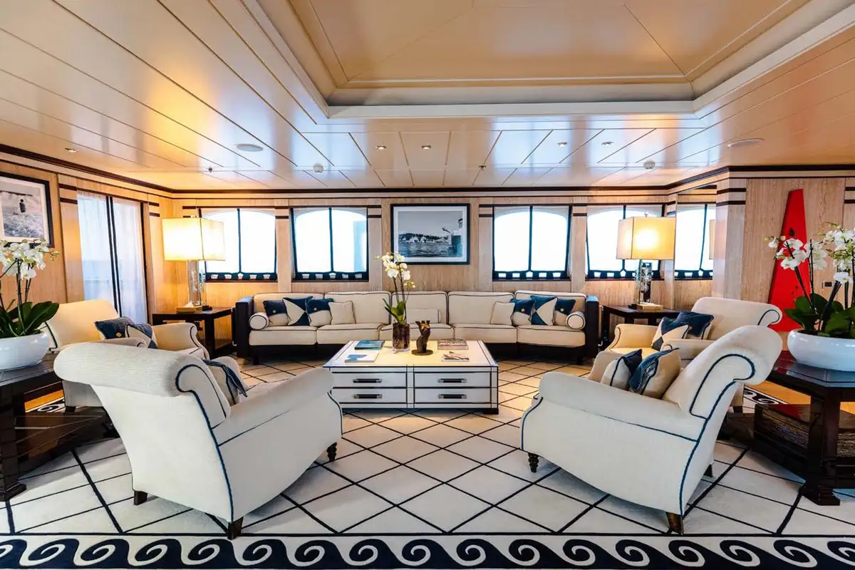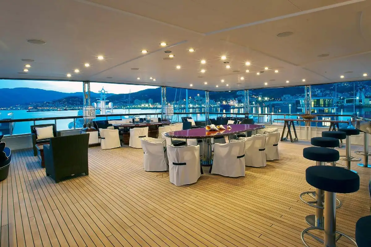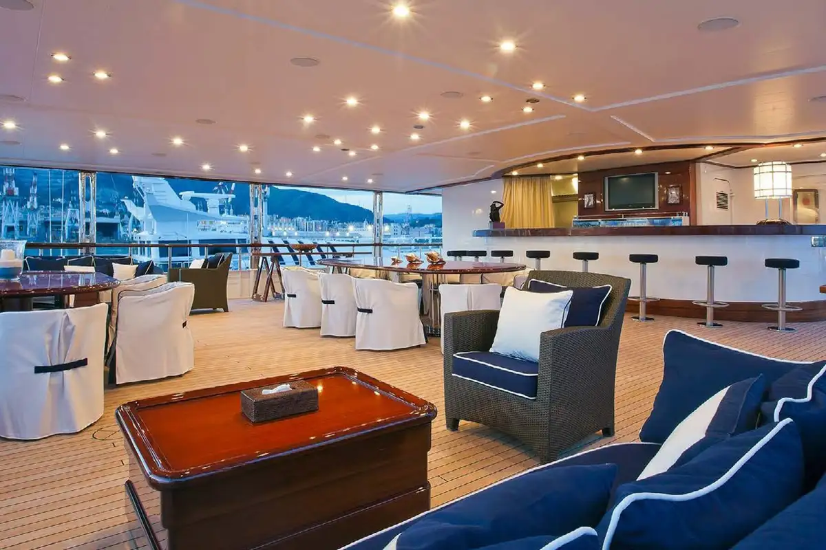 All of this space, totalling 1,325GT, is designed for just 12 overnight guests in six cabins, served by 21 crew – but it comes with the ability to host huge parties on board.