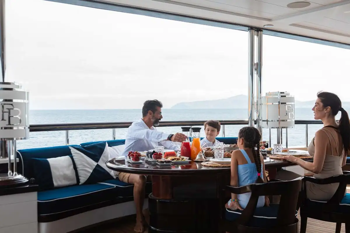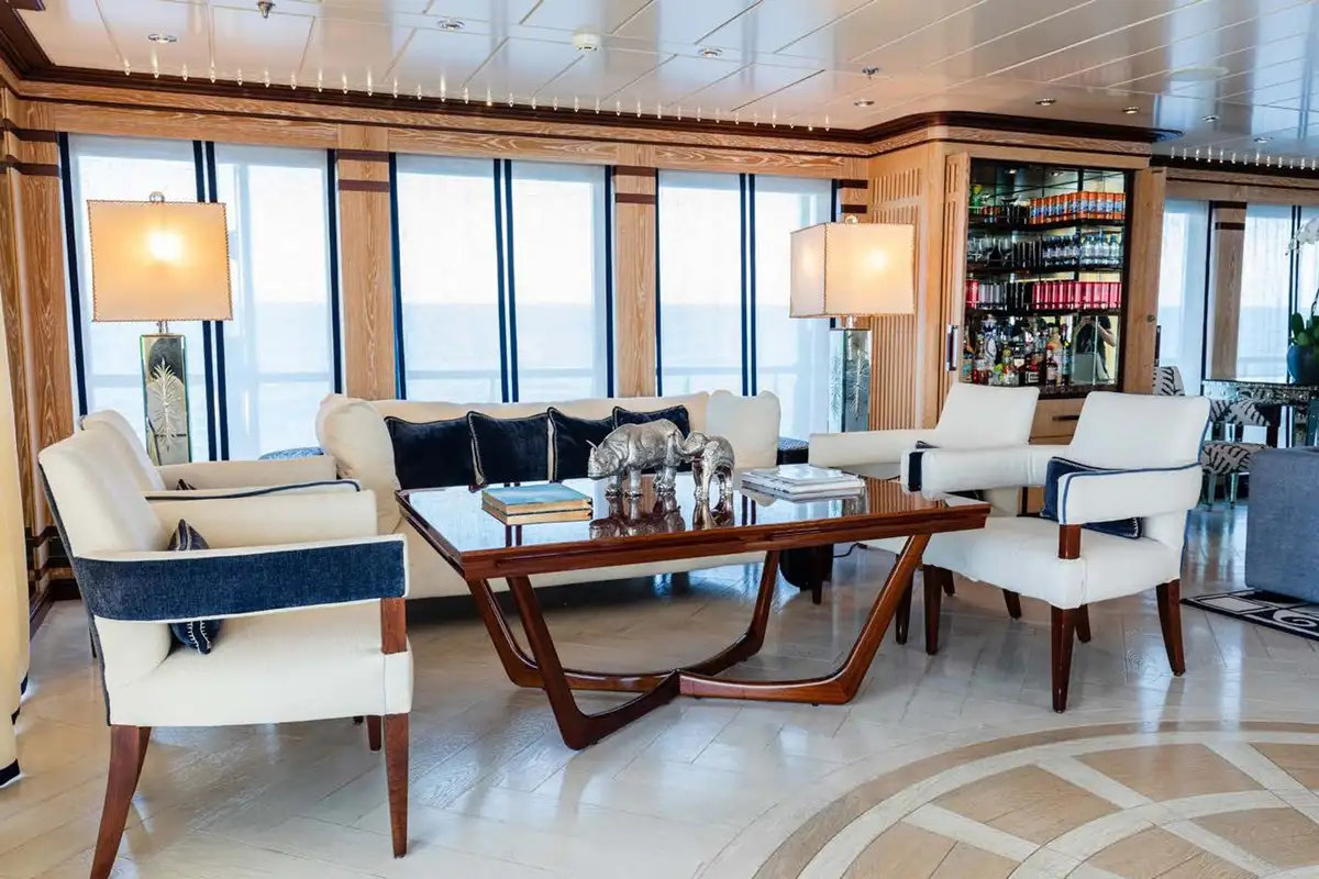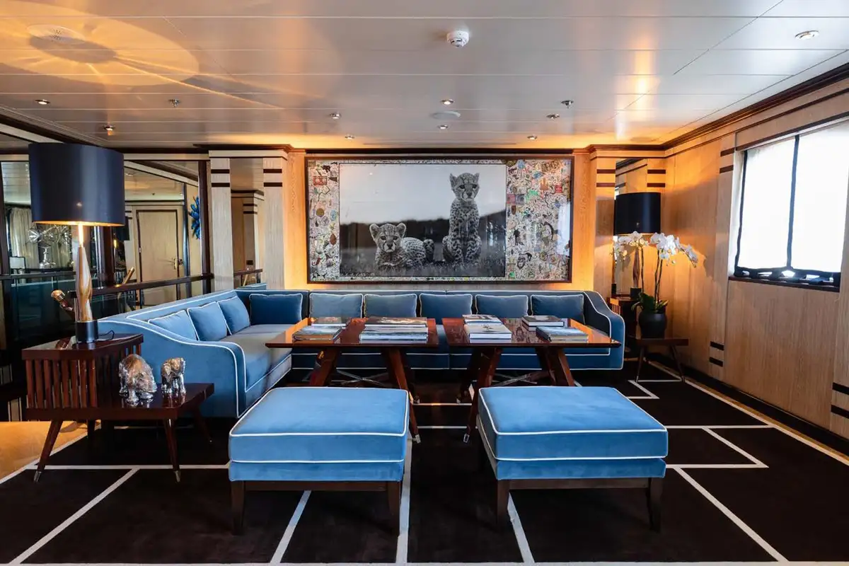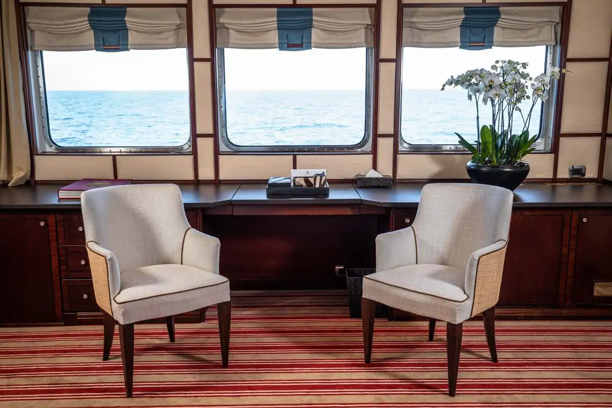 All of this space, totalling 1,325GT, is designed for just 12 overnight guests in six cabins, served by 21 crew – but it comes with the ability to host huge parties on board.