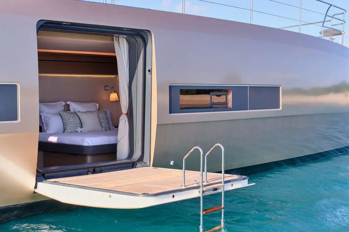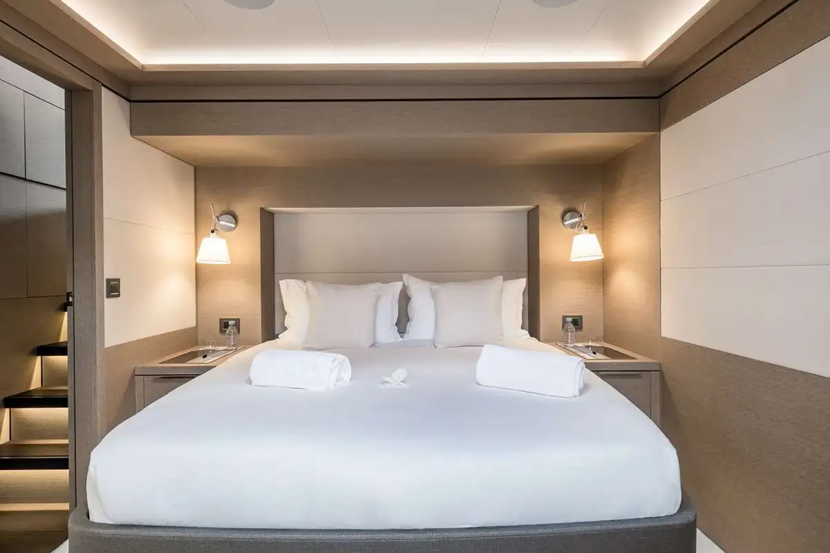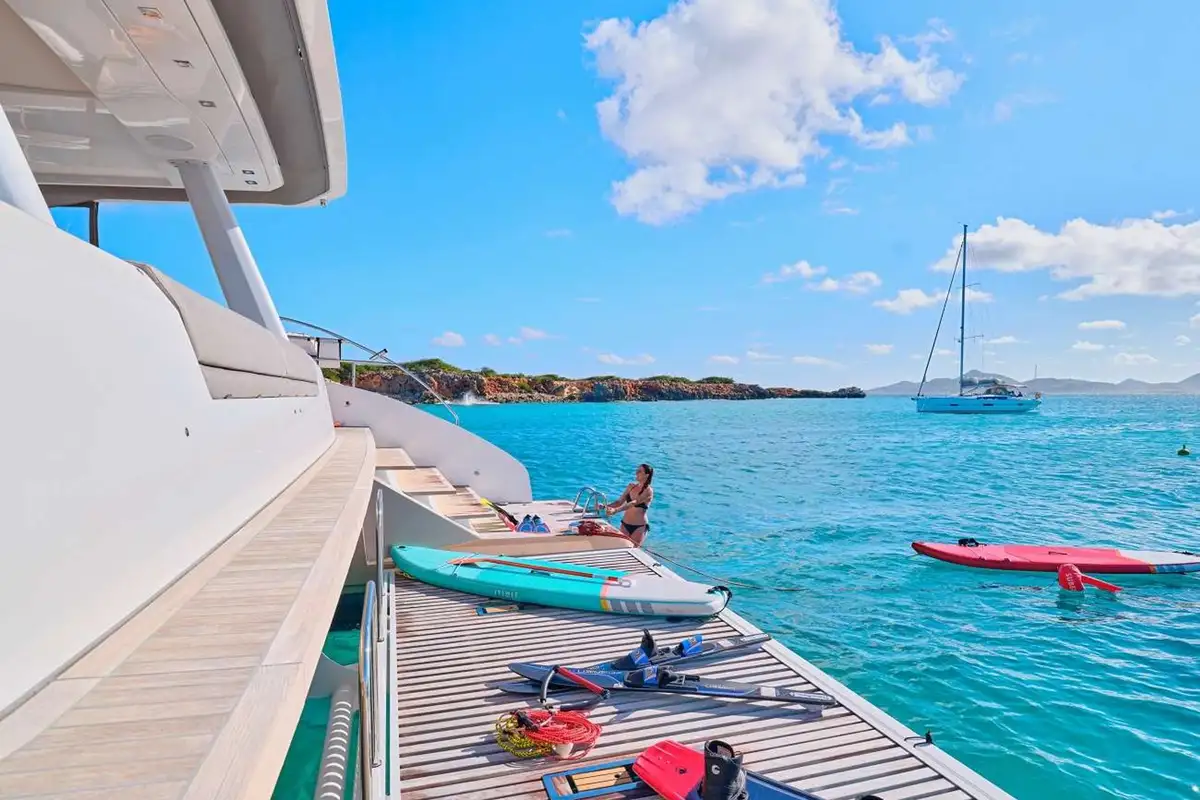 A perfect arc of sand, all but inaccessible by land, fire up the tender, explore the reef, then enjoy a BBQ on the beach with the sand between your toes.