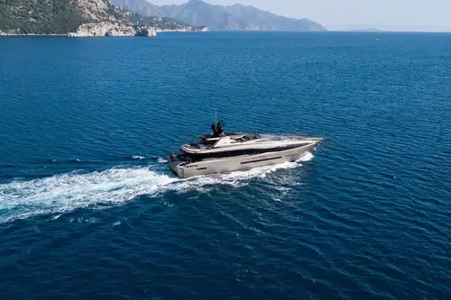 Here’s a good choice of charter yacht for those who like to stand out from the crowd. Highly distinctive and impressively sleek, FX is a low-slung 38m (124ft) yacht with a striking, colour-changing metallic hull and an assertive presence at sea and in harbour. She’s designed to host 10 guests in five cabins, with service from an experienced crew of six.