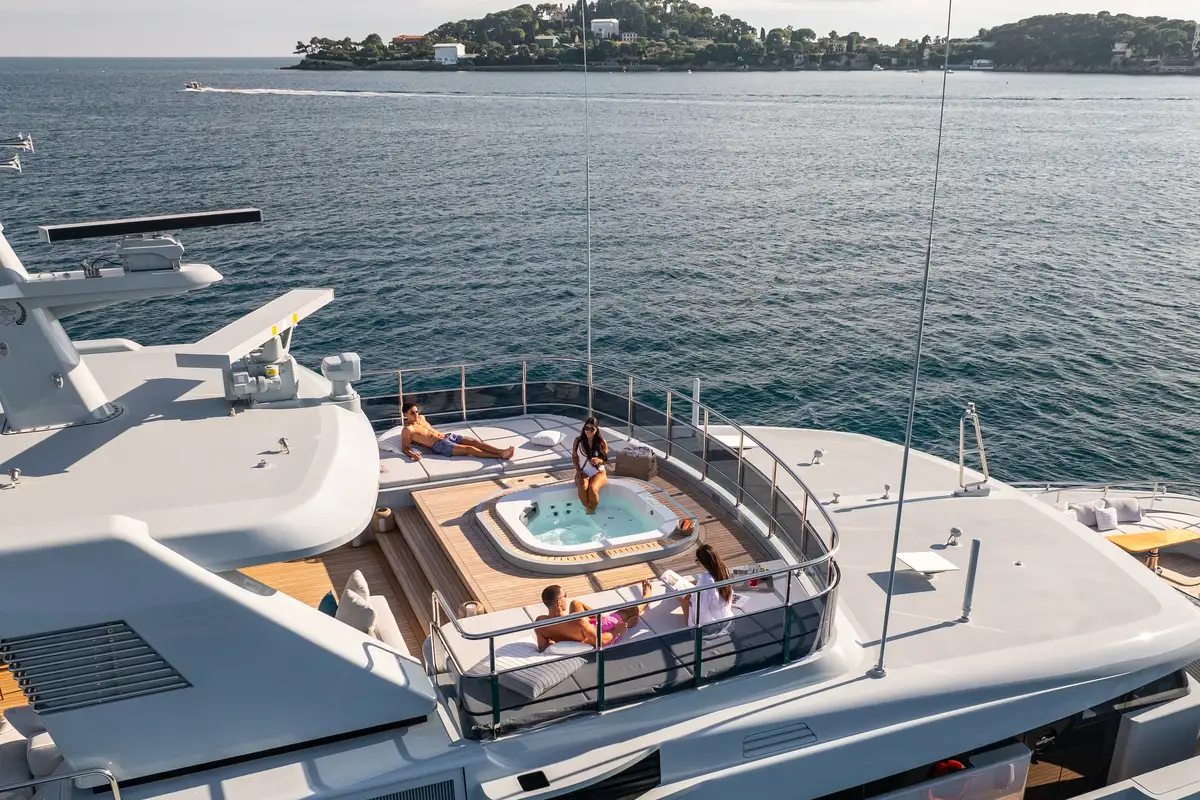 - Spacious sun deck with bar, jacuzzi, and lounging areas