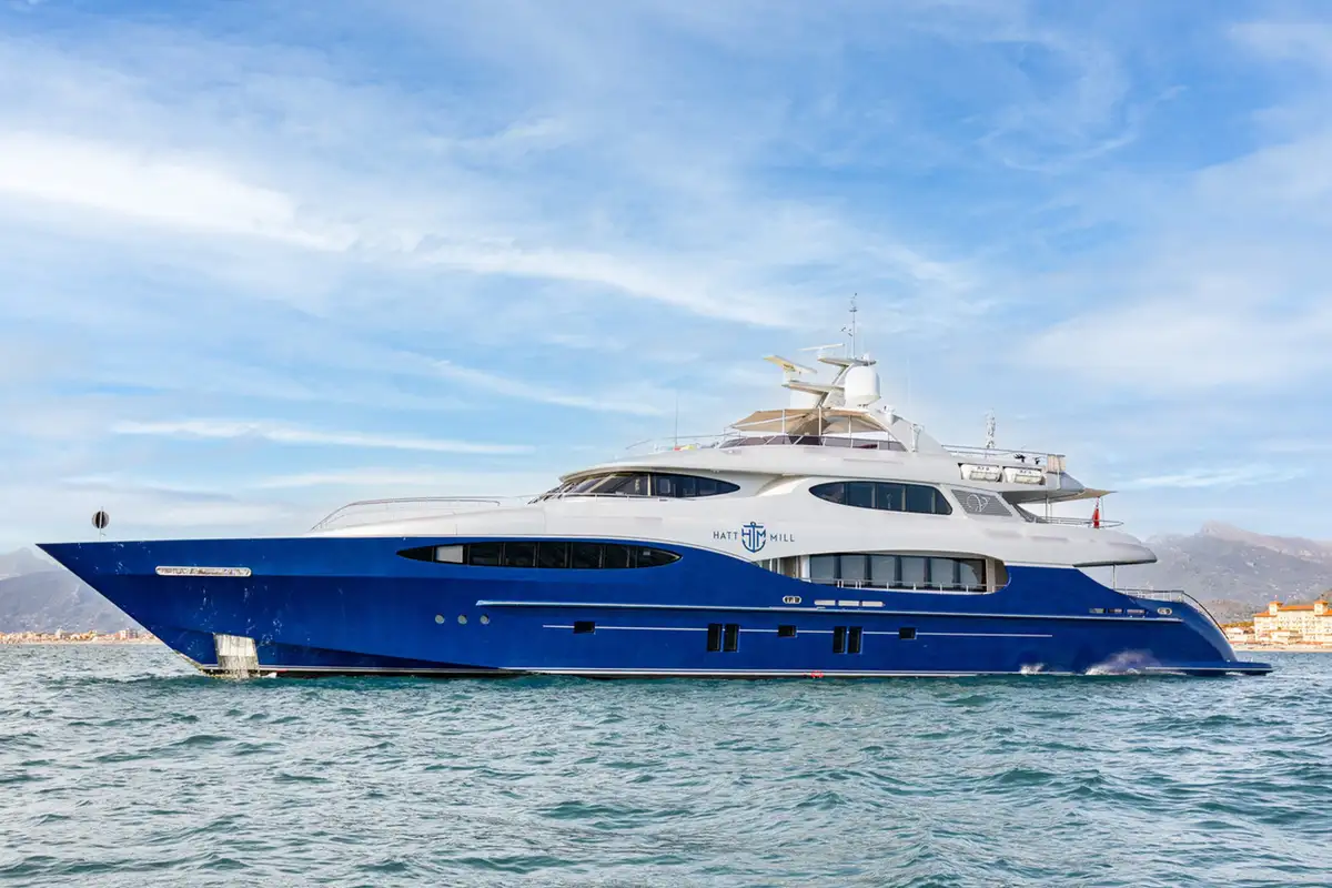 Step aboard HATT MILL, a striking 46m (150.9ft) tri-deck yacht where performance meets luxury. From the drawing board of acclaimed naval architect and designer, Frank Mulder, HATT MILL manages to combine sleek exterior lines, superb interior volume, and fantastic deck spaces, together with extremely impressive performance of speeds up to 23 knots.