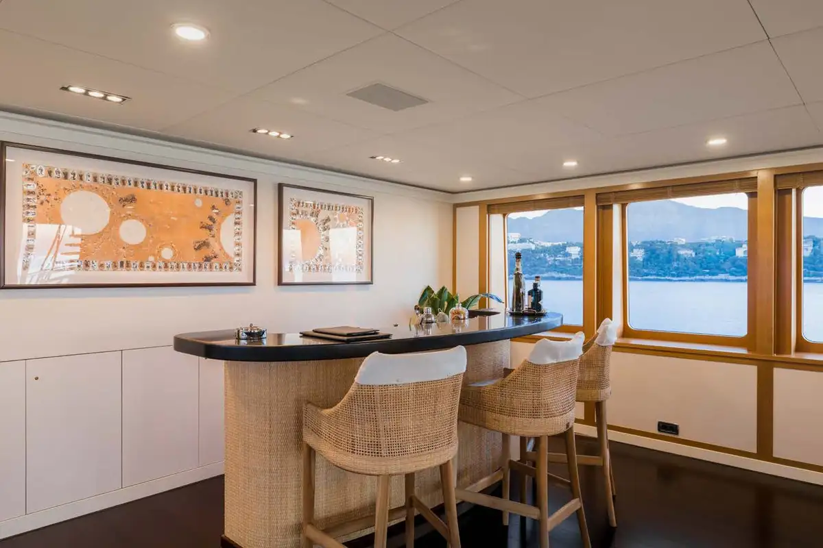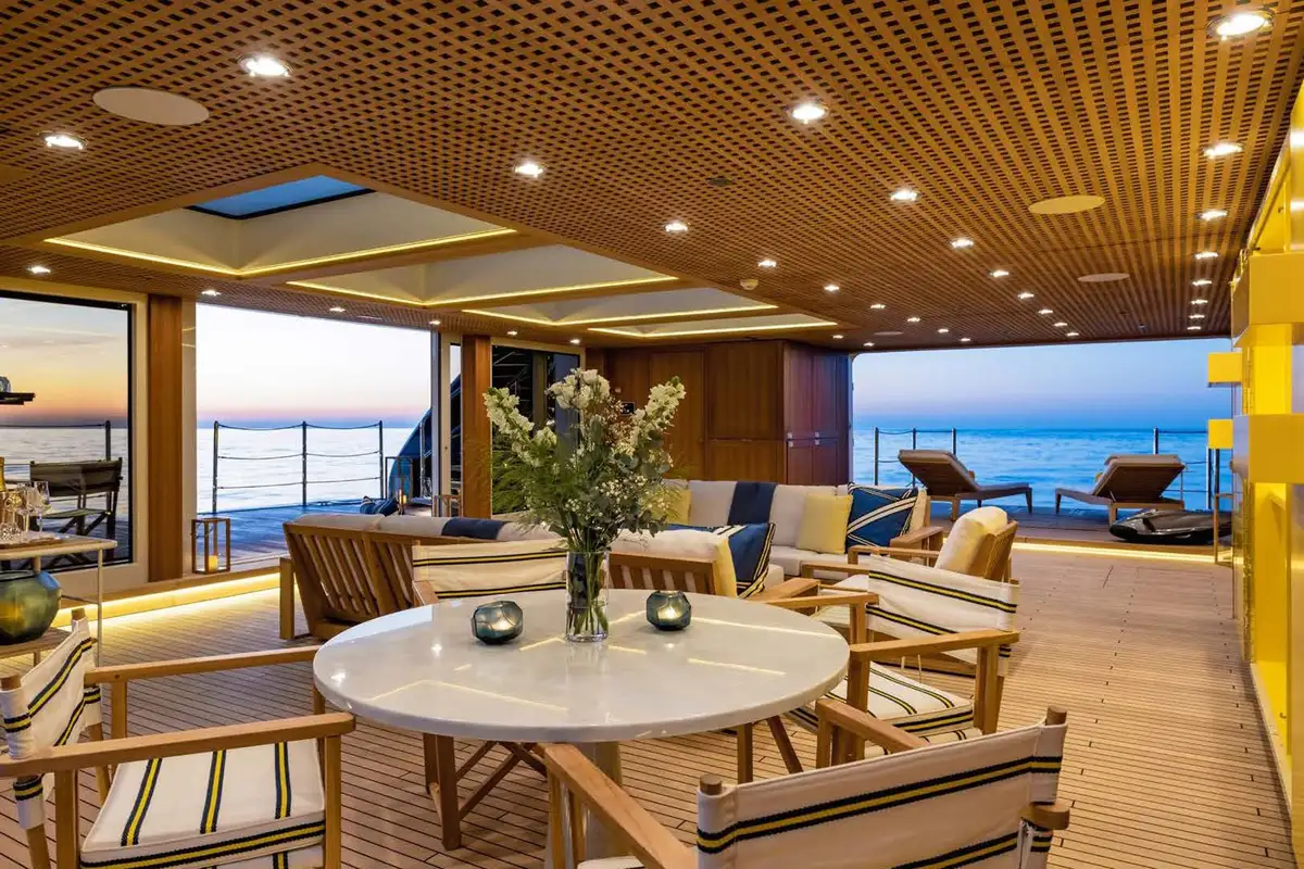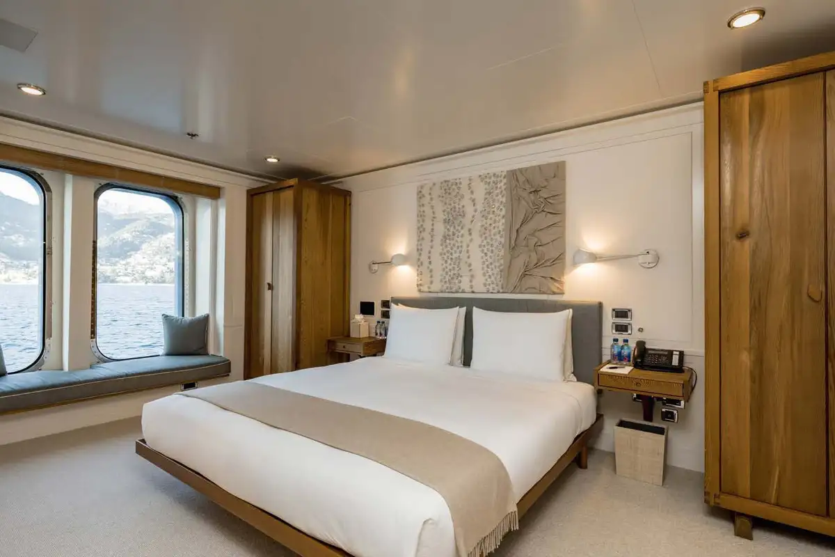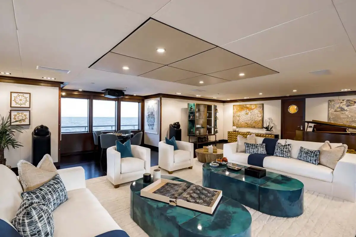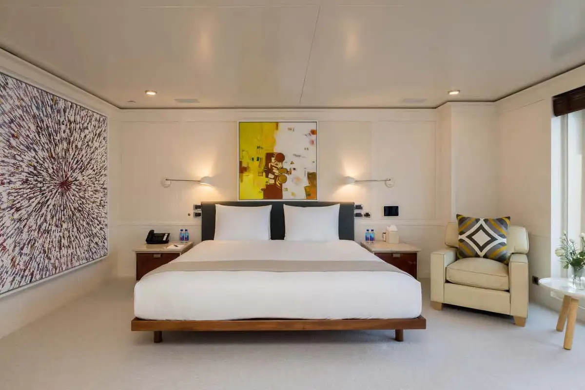 On the main aft deck, there is relaxing seating in the area that converts to an open-air cinema with a drop-down projector screen. The lavish main saloon, too, can be converted into an amazing cinema space. Forward of the lounge, there are more wonderful suites for your guests and the lobby area. Your guests can also take the elevator or the stairs to the lower deck suites.