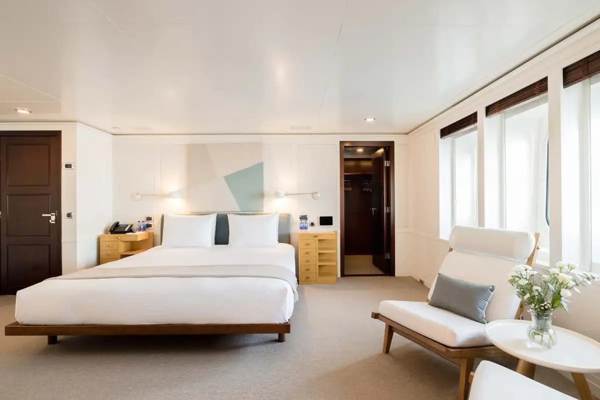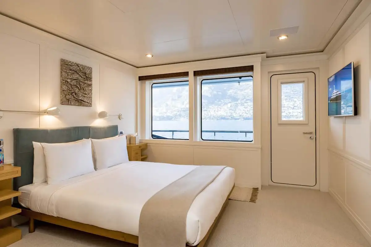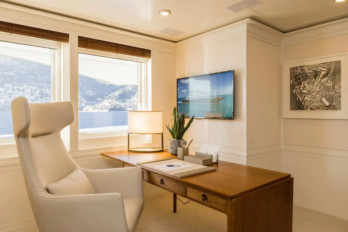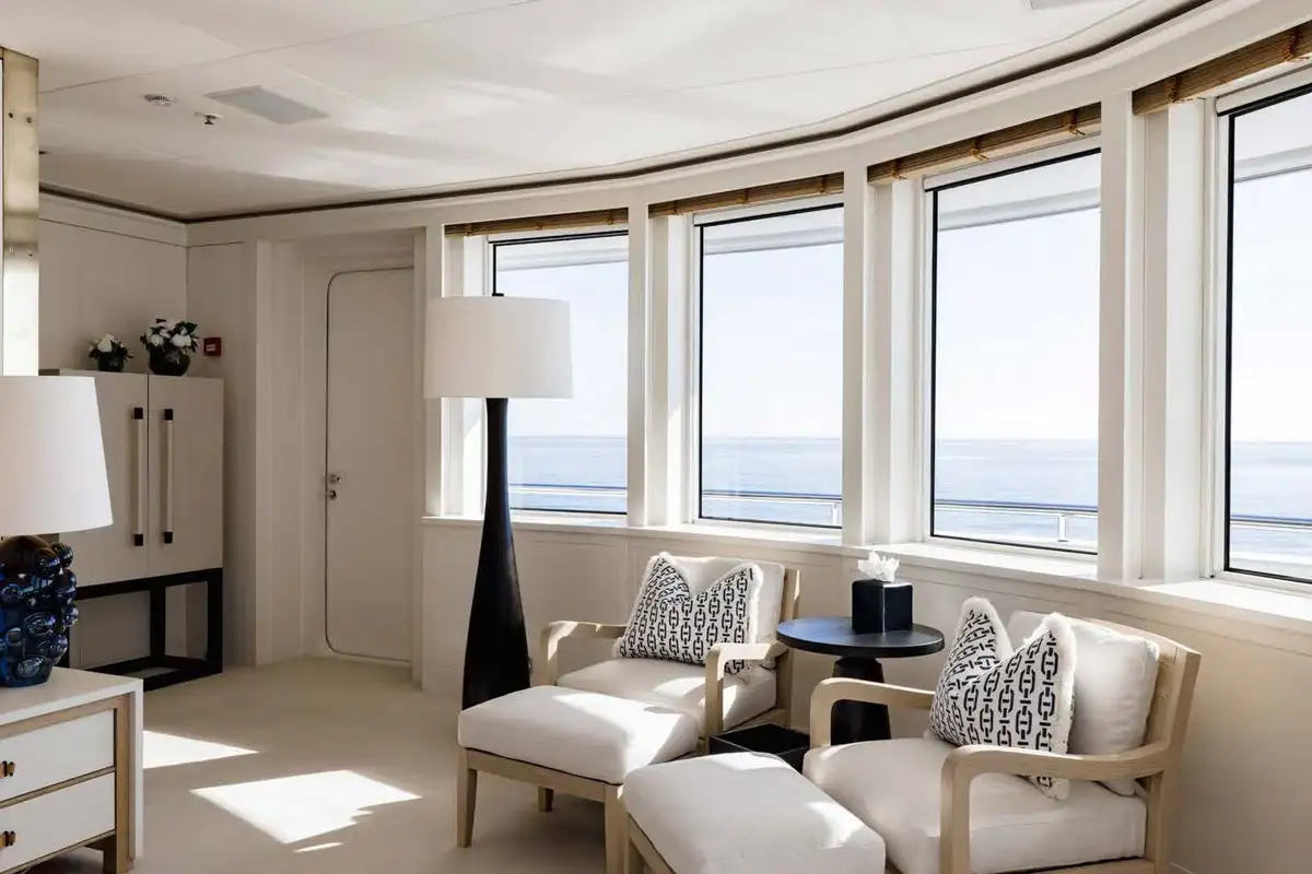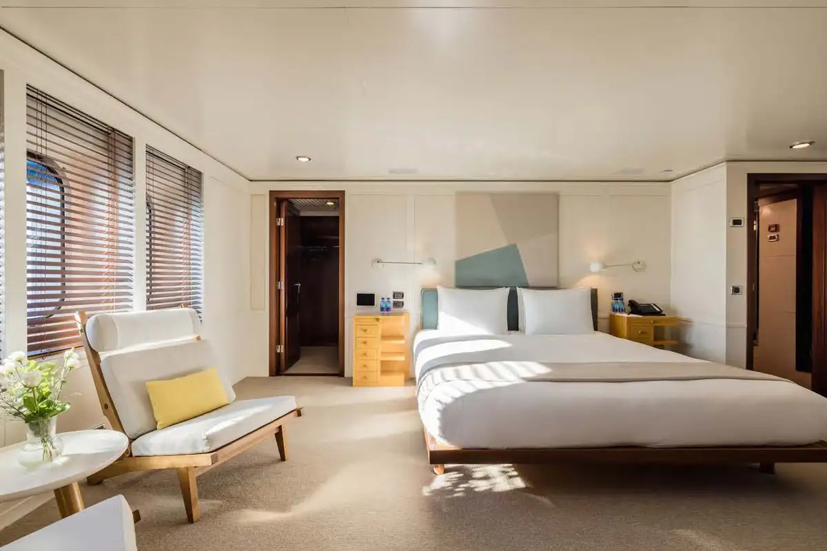 On the main aft deck, there is relaxing seating in the area that converts to an open-air cinema with a drop-down projector screen. The lavish main saloon, too, can be converted into an amazing cinema space. Forward of the lounge, there are more wonderful suites for your guests and the lobby area. Your guests can also take the elevator or the stairs to the lower deck suites.