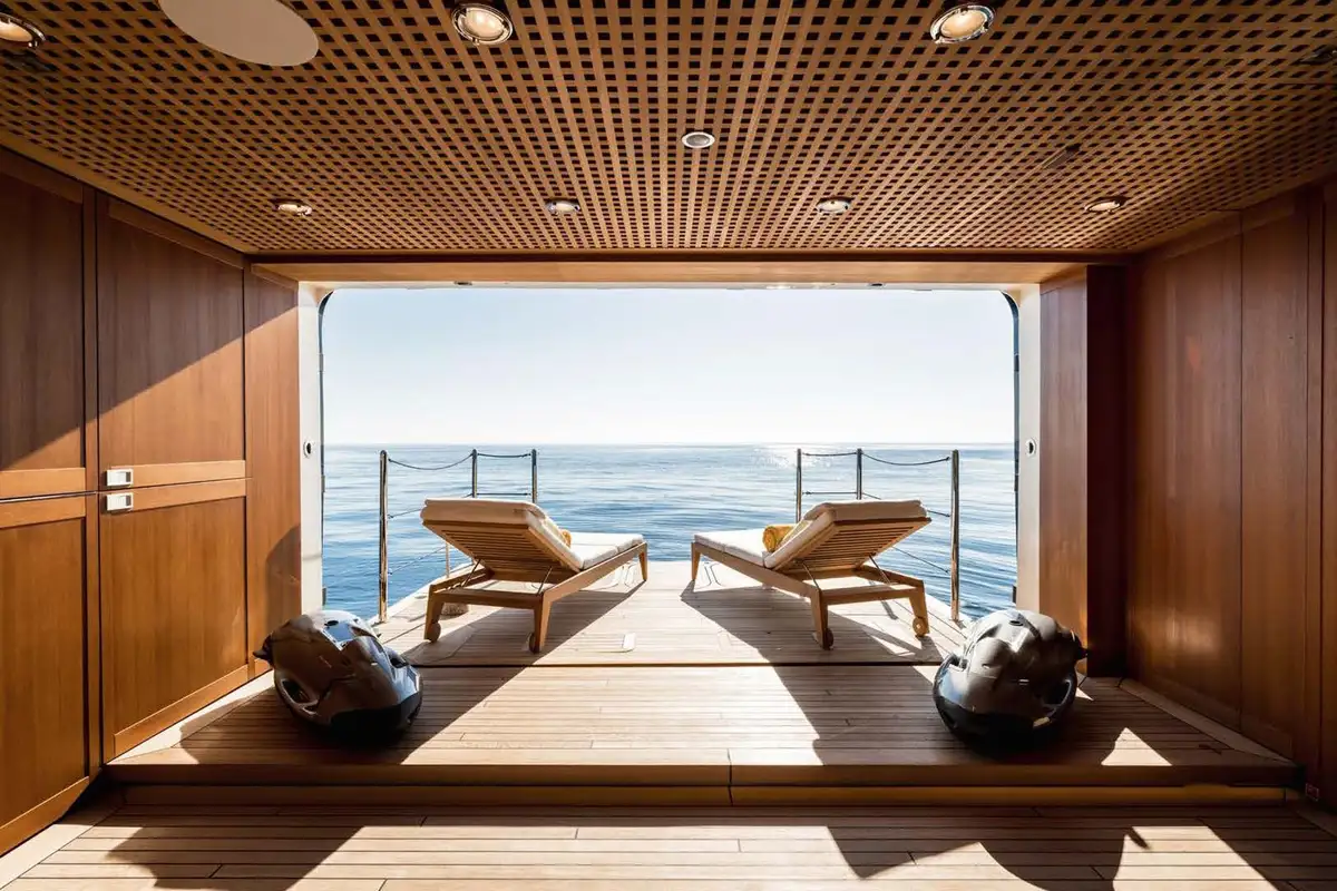 Perhaps you’d like to relax while swimming lengths of HBC’s glass-bottomed swimming pool or in the vast beach club beneath it; enjoying drinks while relaxing on the fold-down sea terraces, before diving off for a swim or for some time on the yacht’s paddleboards or even to explore underwater with HBC’s range of electric water scooters.