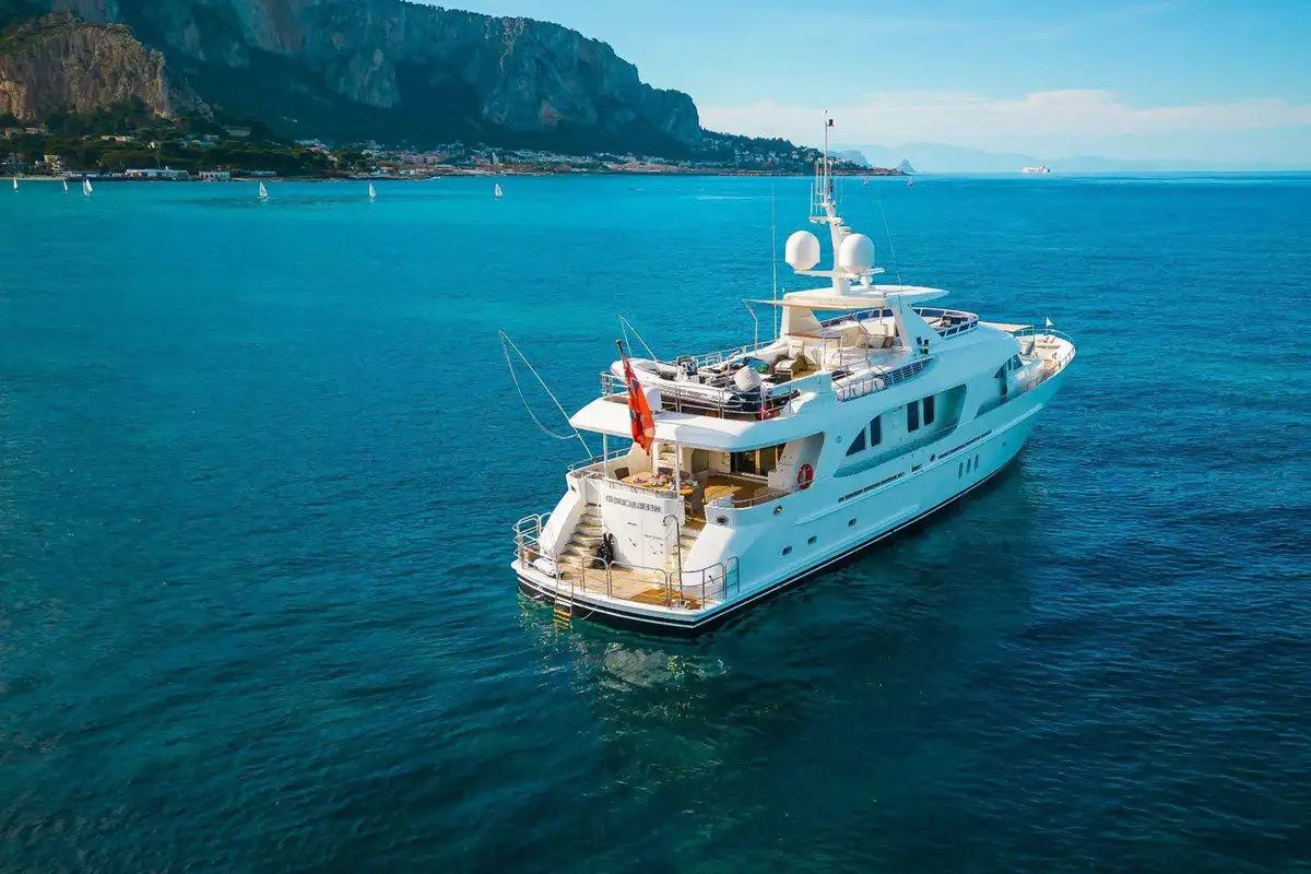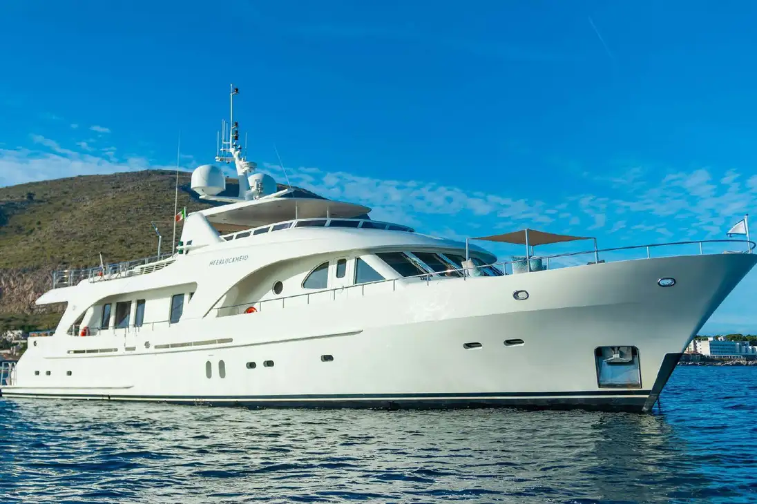 Spelling the name of this luxury yacht is the only complicated thing you will encounter when you charter these 30 meters of pampering for you and your loved ones. Meaning ‘Glory’, Heerlijckheid will make sure your days sailing around the Balearic Islands will be just that – glorious. Featuring an exterior design by René van der Velden Yacht Design, there is room for up to nine guests in four cabins. Built in the Netherlands by Moonen, she boasts a maximum cruising range of 4000 nautical miles and a top speed of 13 knots, with power coming from two Caterpillar diesel engines. Delivered in 2010, she is built with a teak deck, a steel hull, and an aluminium superstructure.
