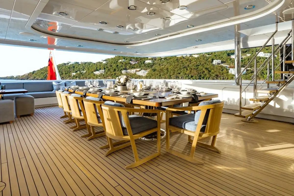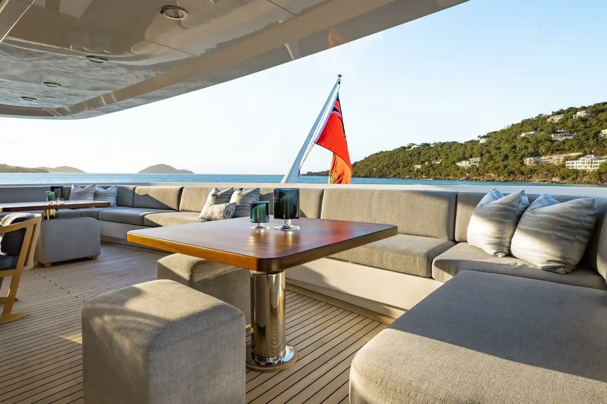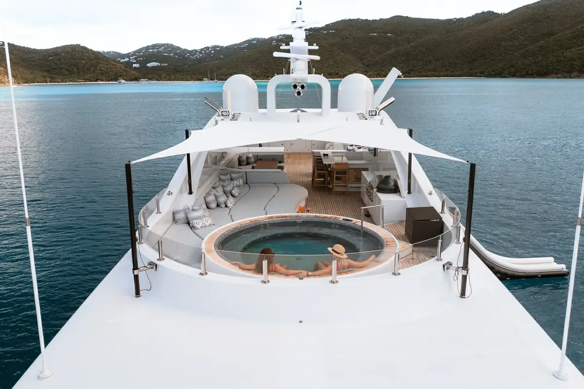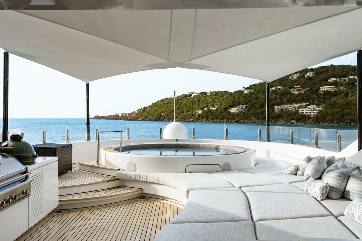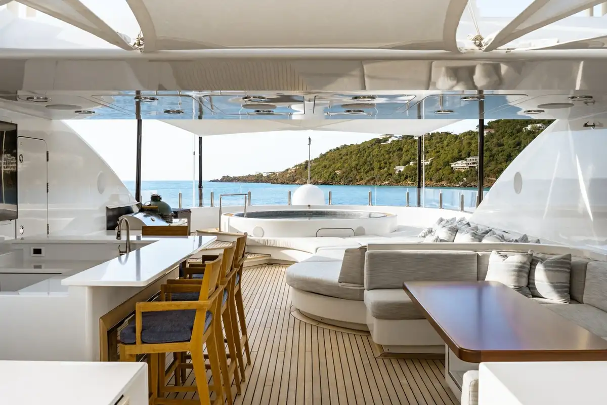 HOLDIN' MY OWN boasts many social areas including a large dining table on the upper deck aft deck for al fresco meals and yet another bar, dining table and barbecue on the spacious sun deck. The jacuzzi surrounded by large sun pads is the perfect place to spend the day in the sun.