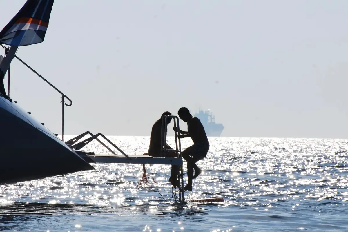 In high-performance mode you are guaranteed a thrilling ride, especially when the conditions are right to fly her enormous white gennaker from the masthead and she slices through the sea at powerboat speed with a smooth, comfortable motion. On passage between one destination and the next, there’s no noise and vibration from a diesel engine and no exhaust fumes, just the gentle hiss of her bow parting the waves and the wind in her sails as you relax in one of the plush and spacious passenger cockpits – inside with an all-round view or outside with the breeze in your hair.
