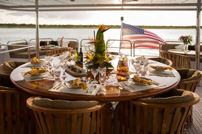 The interior style is classic and inviting, with a variety of places and spaces to unwind and relax. There are two large, comfortable lounges on the main and upper deck level, both sumptuously finished, each one offering a different vibe.