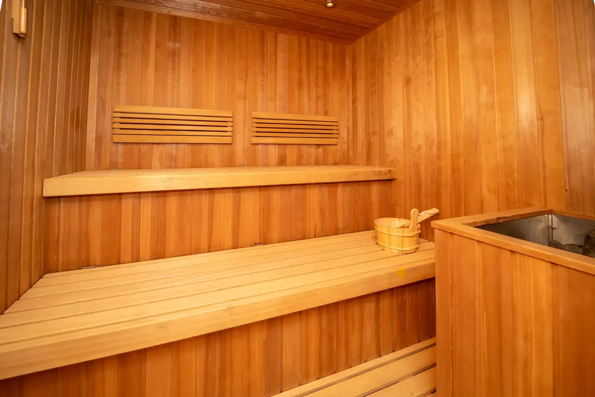 - Impressive air-conditioned beach club with bar, workout and wellness areas, sauna and ice bath