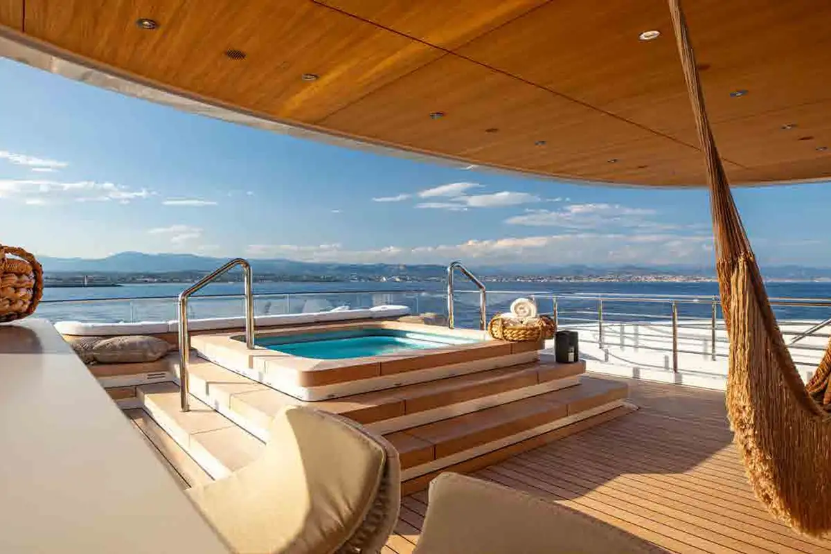 - Infinity jacuzzi/pool on the main deck aft & jacuzzi on the bridge deck aft