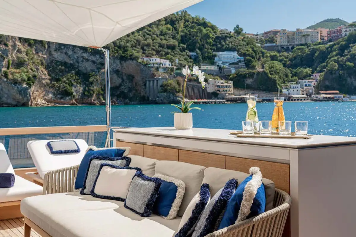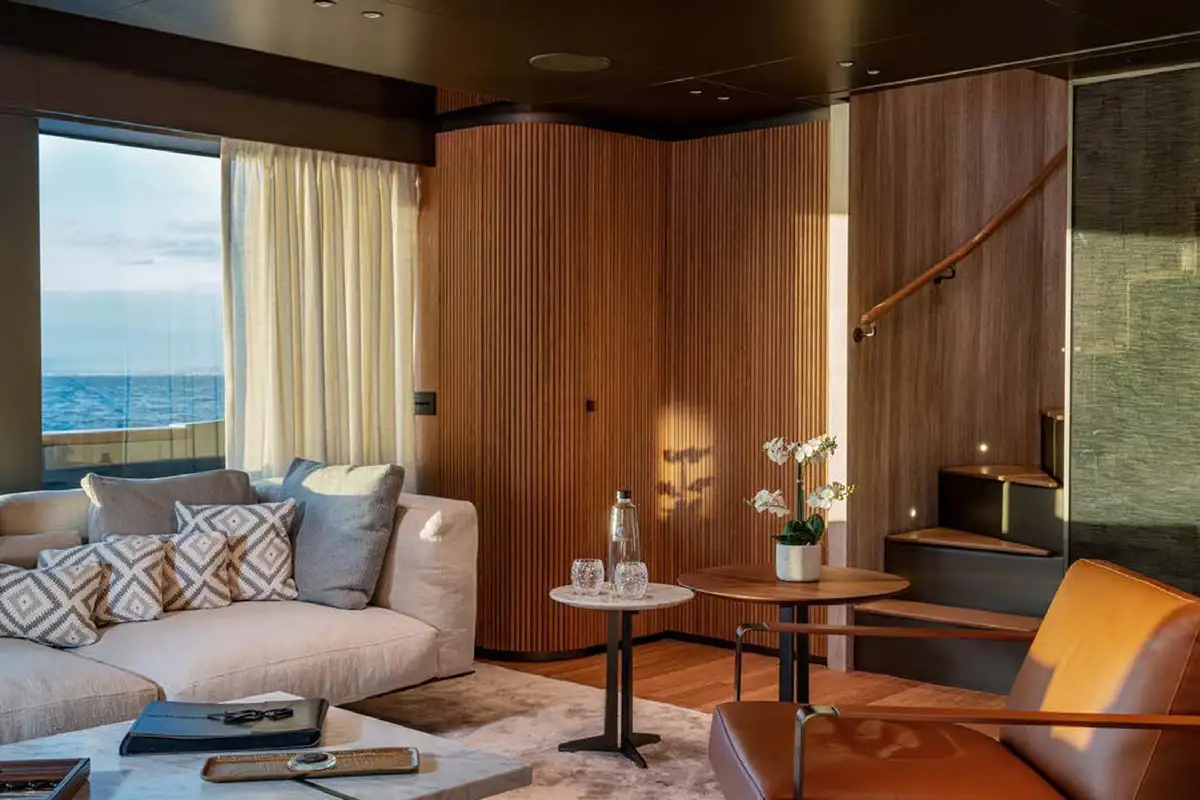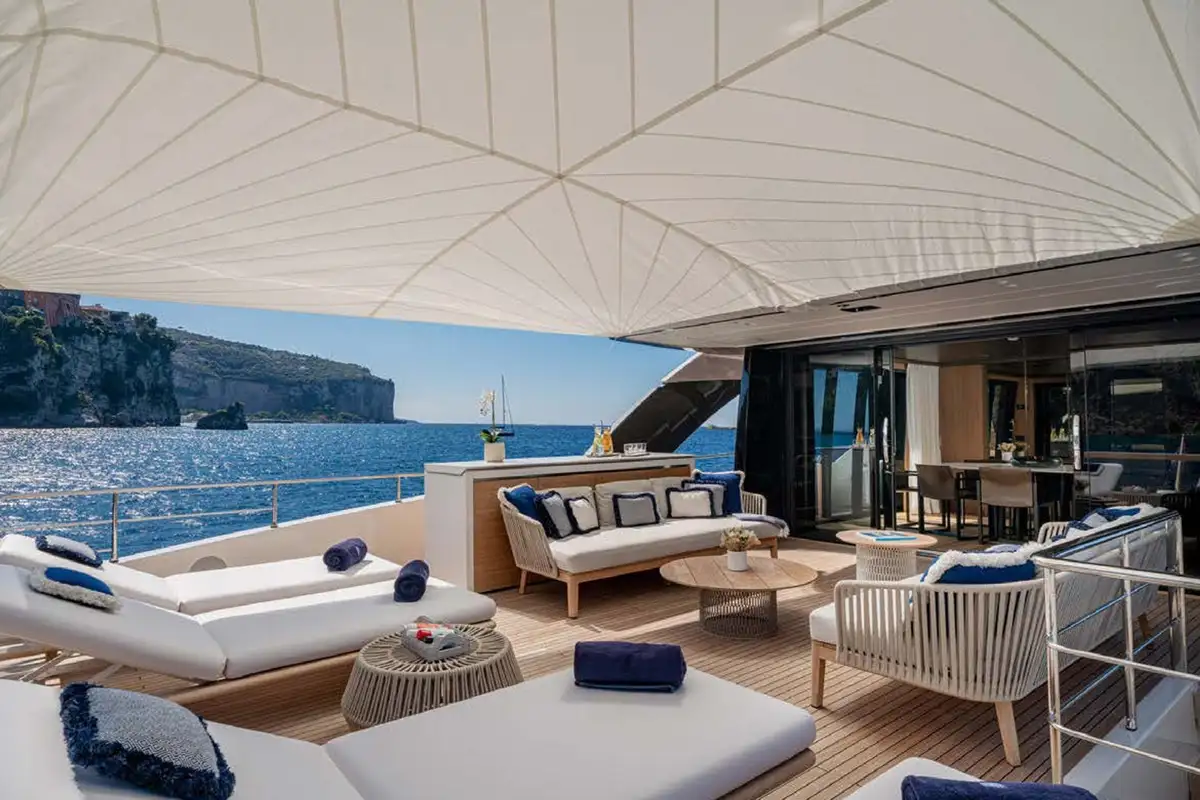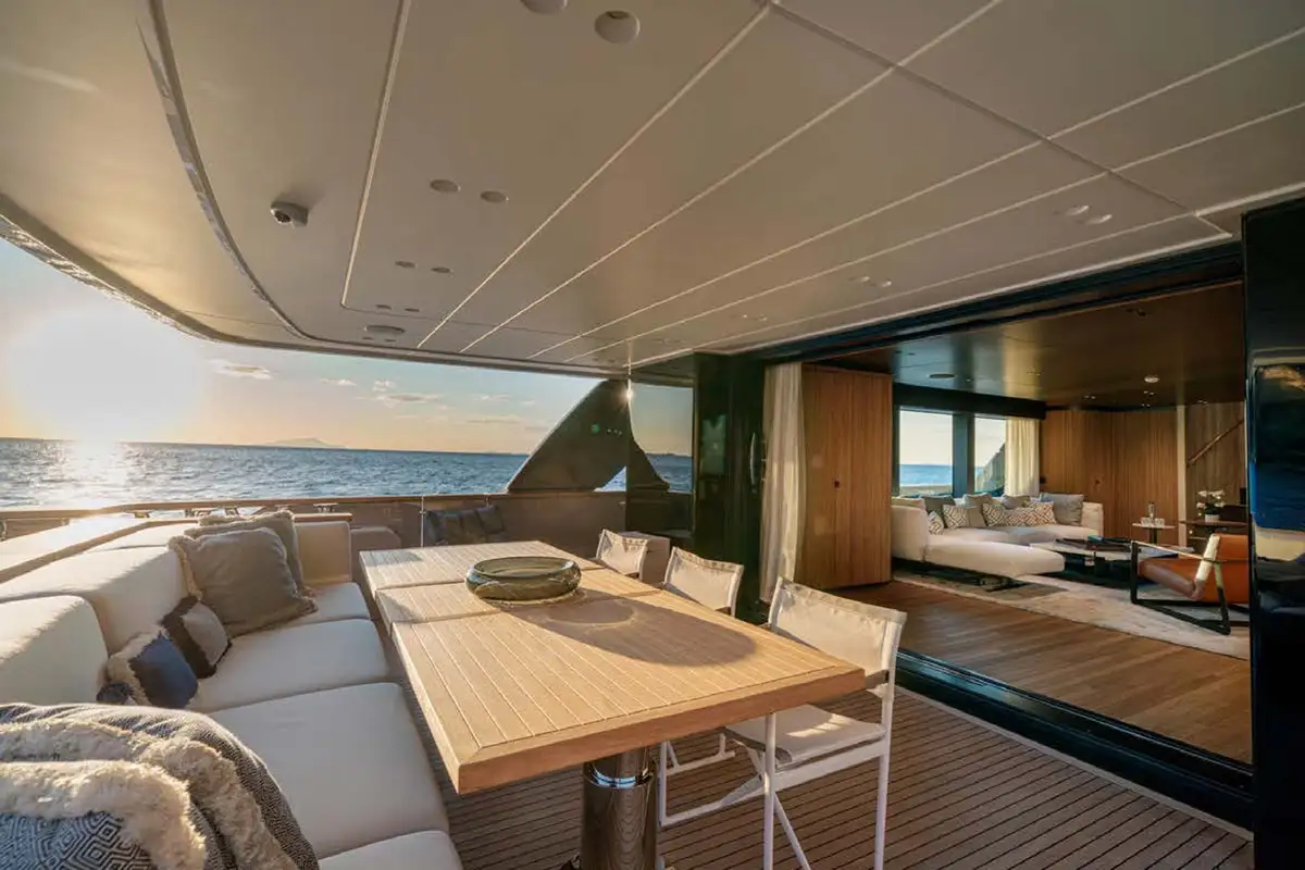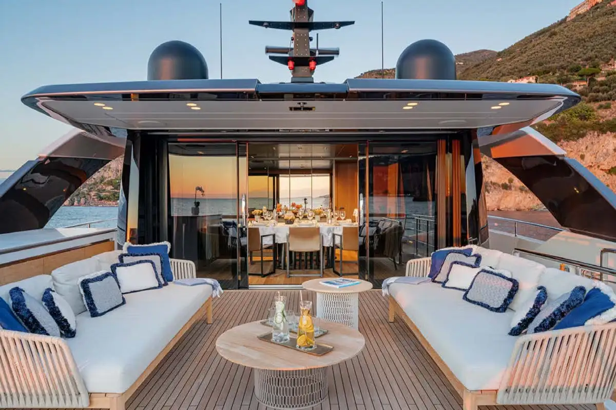 The 28.93m motor yacht INVICTUS by the Italian shipyard Sanlorenzo offers flexible accommodation for up to 11 guests in 5 cabins. Due to her carefully considered layout and the beautiful balance achieved between design and volume, she is not only exceptionally elegant, but also offers guests comfort whilst at sea. The different styles and furnishings make her interior warm and welcoming while offering an overall sophisticated and luxurious look. Built in 2022, INVICTUS’ bespoke fittings and design ensure guests can explore the ocean’s wonders in style and comfort.