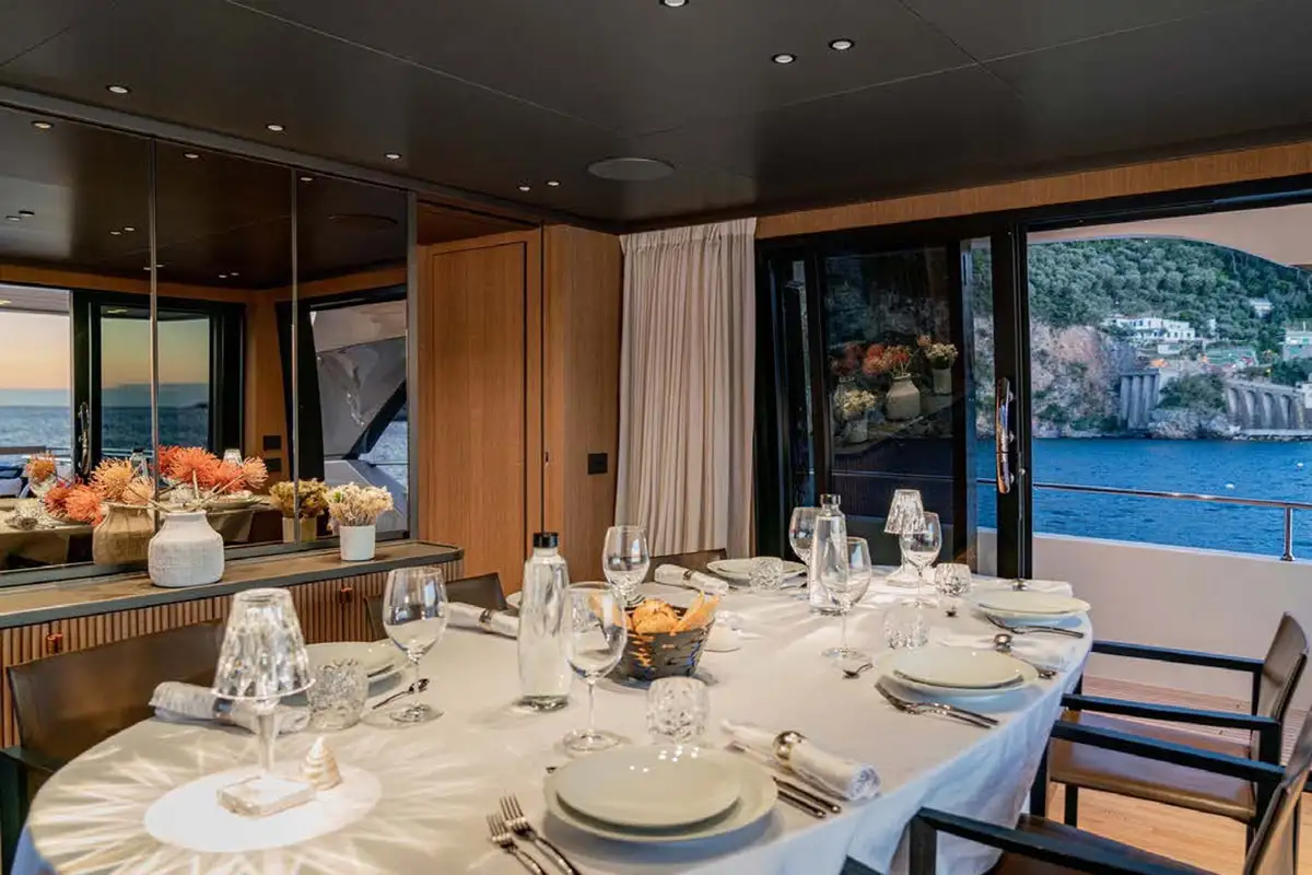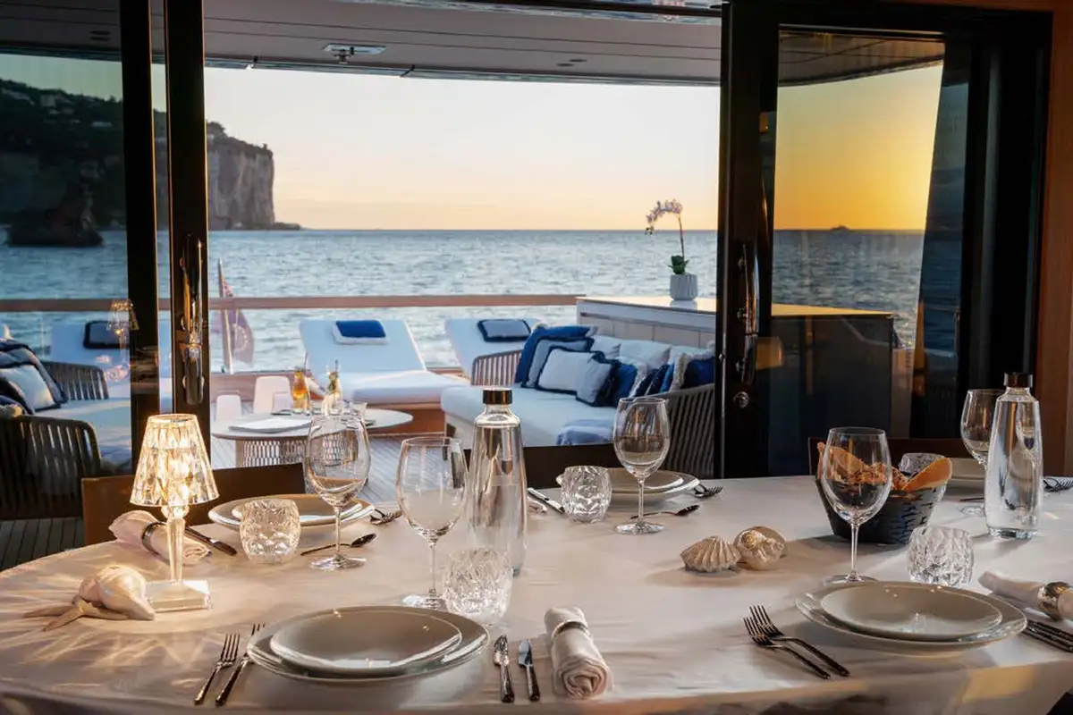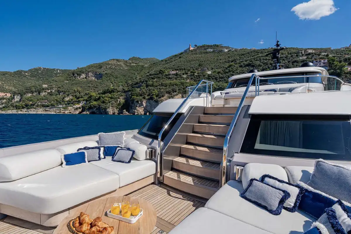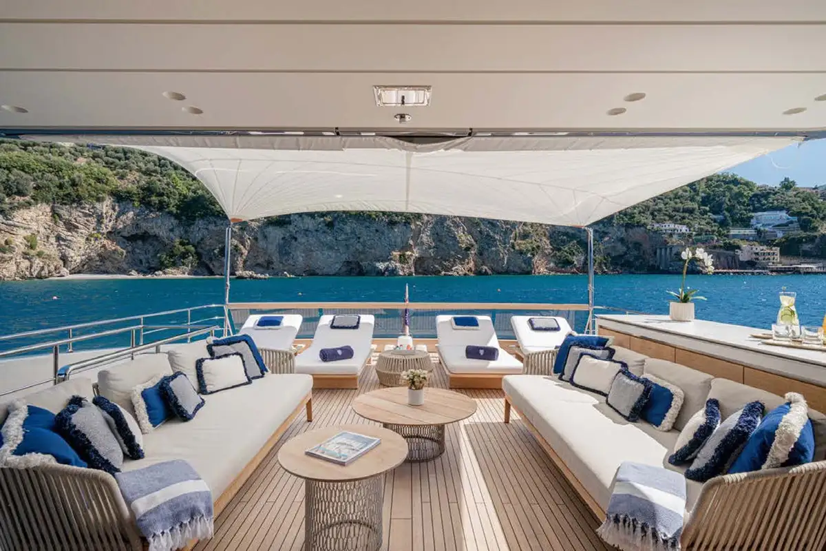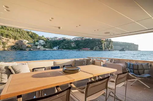 The 28.93m motor yacht INVICTUS by the Italian shipyard Sanlorenzo offers flexible accommodation for up to 11 guests in 5 cabins. Due to her carefully considered layout and the beautiful balance achieved between design and volume, she is not only exceptionally elegant, but also offers guests comfort whilst at sea. The different styles and furnishings make her interior warm and welcoming while offering an overall sophisticated and luxurious look. Built in 2022, INVICTUS’ bespoke fittings and design ensure guests can explore the ocean’s wonders in style and comfort.