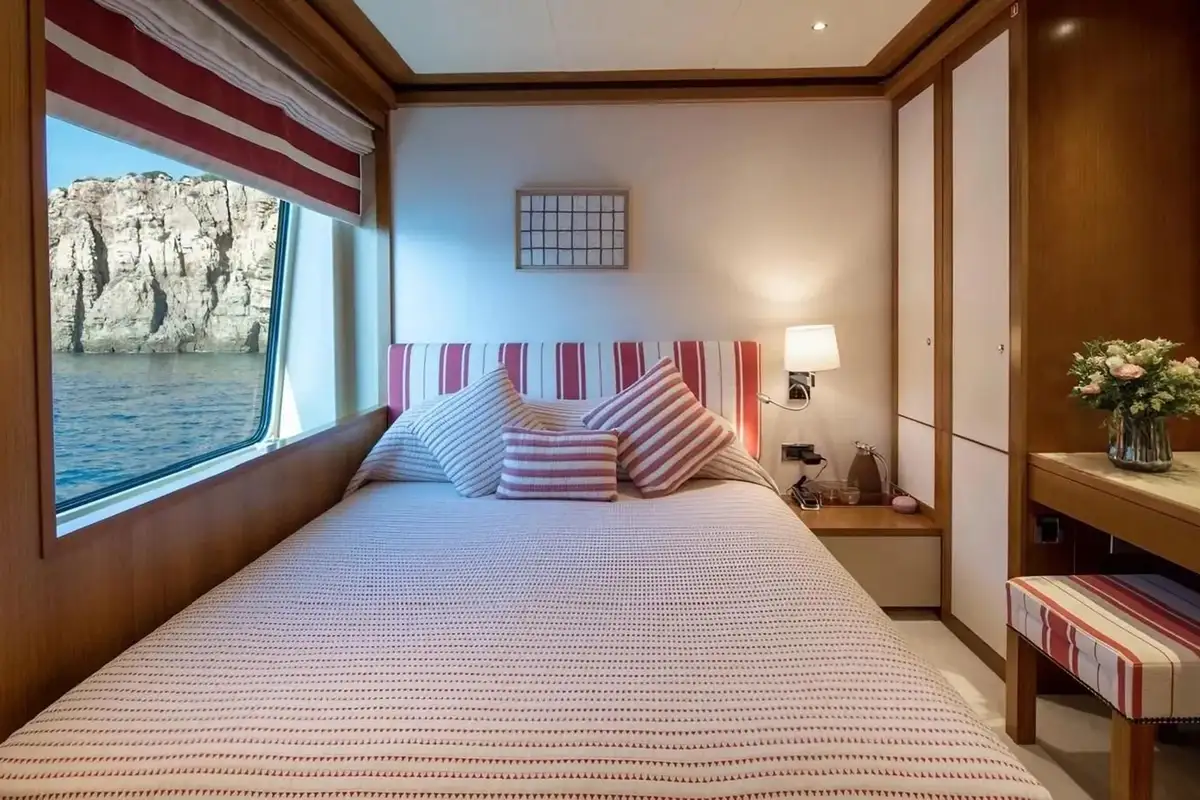 Descending to the lower deck unveils four delightful guest suites that give your guest flexible sleeping arrangements. The suites include two double suites to the rear and two twin-berth cabins forward of the lobby. Each suite boasts luxurious en suite bathrooms.