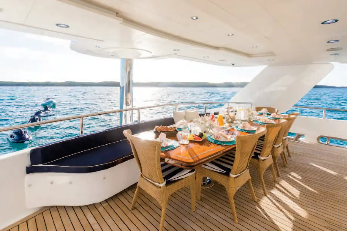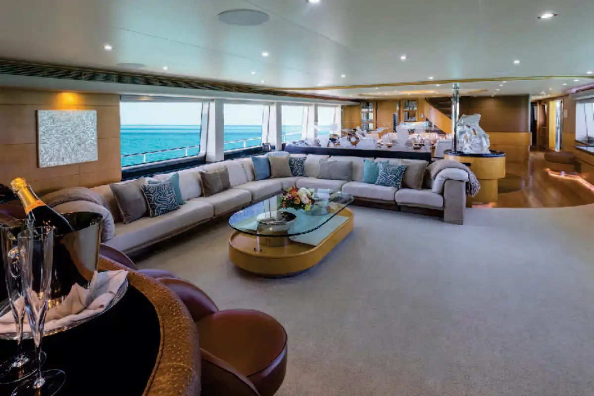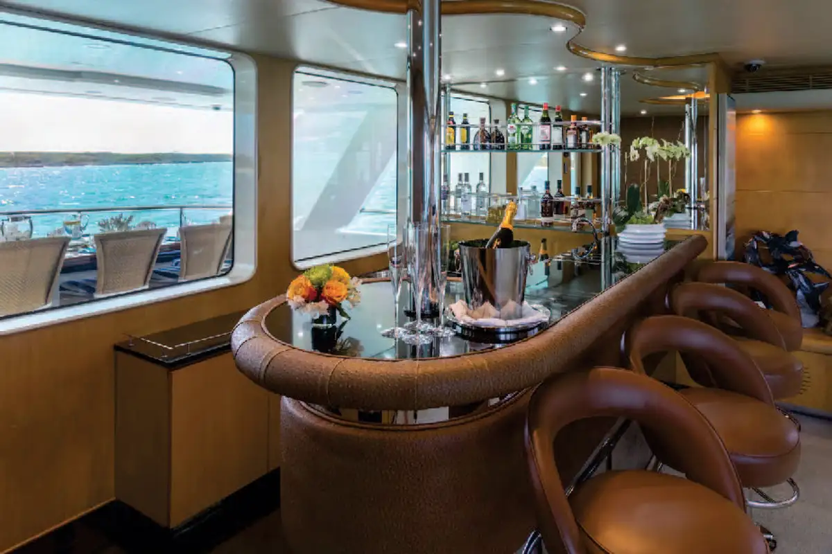 Her two spacious lounges offer a choice of tranquil retreats when you want a break from sun, sand and sea. The main deck saloon is elegant and formal with a bar, a dining table and a large, sociable lounge. The upper deck saloon is a cosy living room where some guests can curl up with a book while others watch a movie, game or match on the big TV.