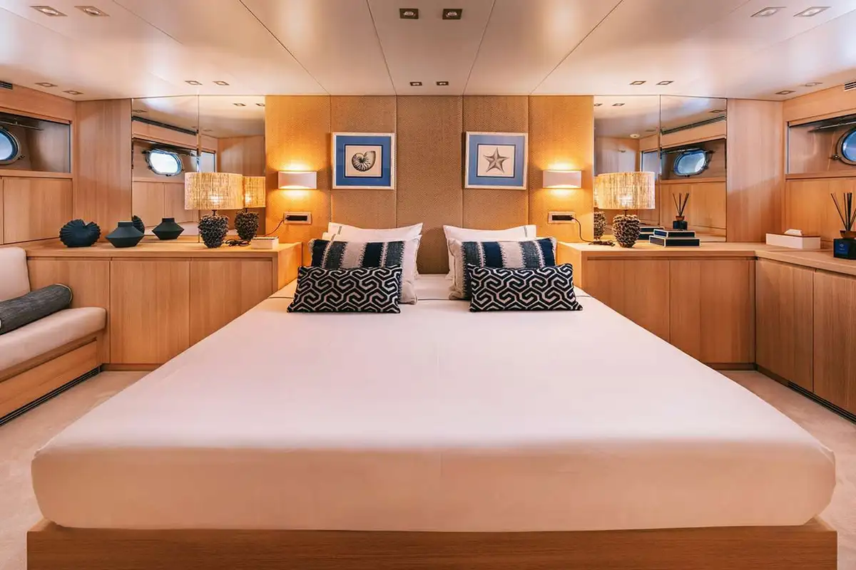 The 33.45m (109.9ft) motor yacht ISLANDER II by the Italian shipyard Baglietto offers flexible accommodation for up to 11 guests in five cabins and features interior styling by Italian designer Francesco Paszkowski Design.