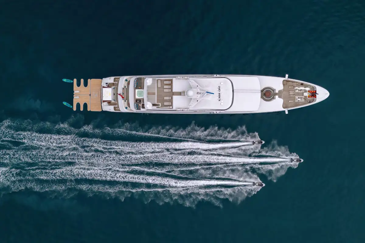 Adventure awaits with an impressive array of water toys and amenities. Guests can enjoy the thrill of three jetskis, two SeaBobs, an inflatable platform, eFoils, and a waterslide. For those seeking something a little more laidback, fishing gear, kayaks, and snorkeling gear are readily available. A 9.9-metre Castoldi tender ensures seamless transfers to shore or exploration of secluded coves.