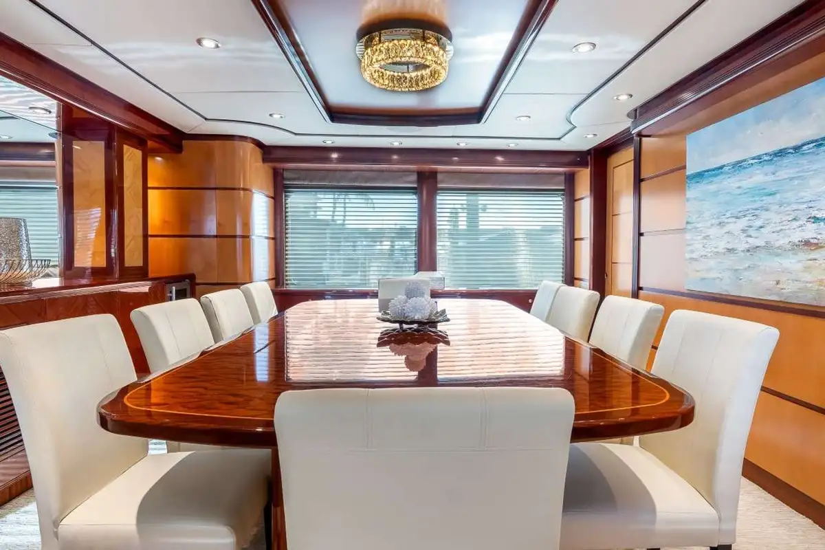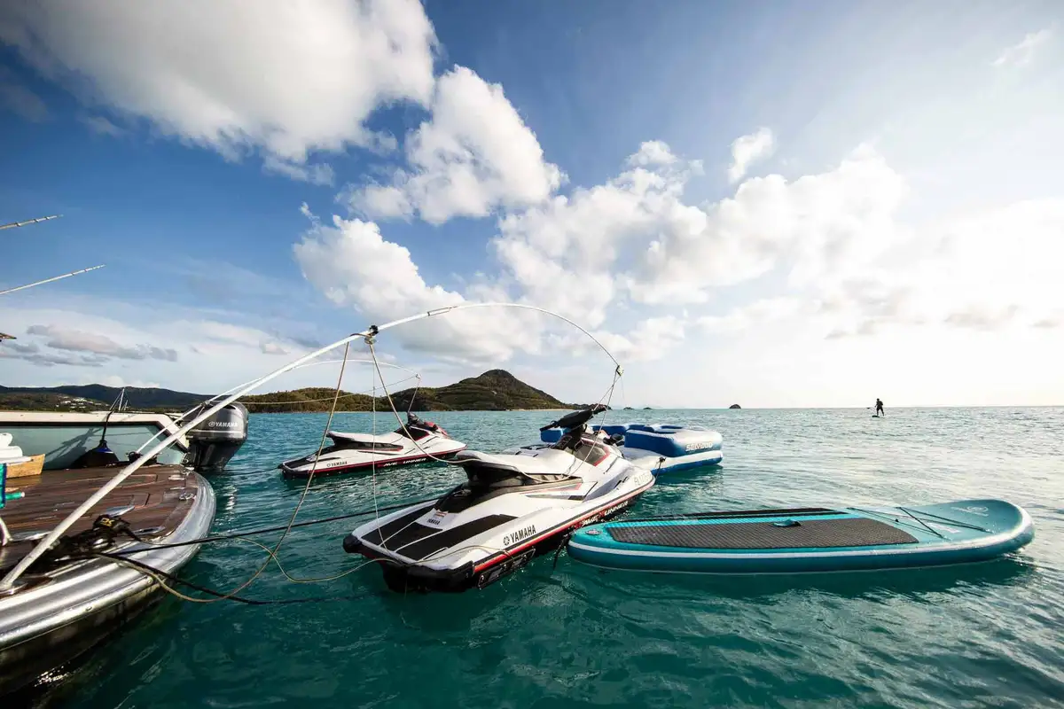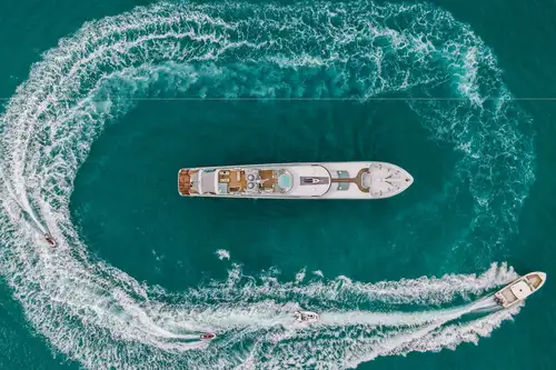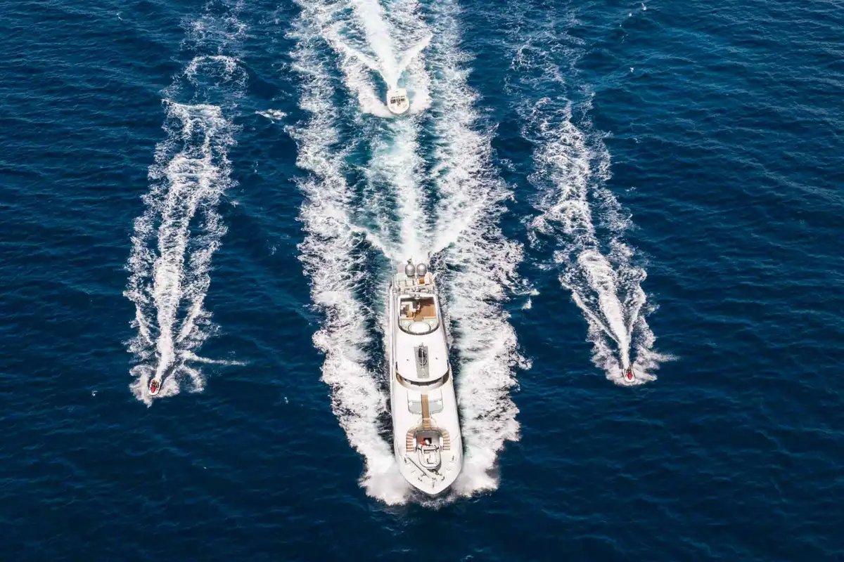She also has two double sunbeds on the foredeck for tranquil relaxation and the main deck aft is another large outdoor lounge/dining space that directly connected to the watersports zone on her large stern platform. She’s very well equipped to deliver all sorts of aquatic fun with two tenders, two jet skis, a seawater pool for safe swimming, paddleboards, dive and snorkel gear, water skis and more.