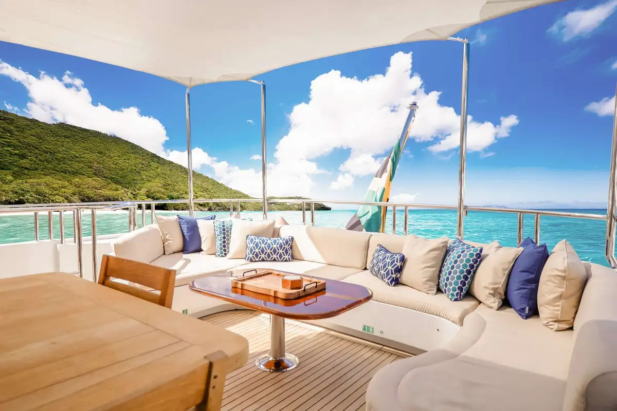 Extensively refitted in 2018, her classic luxe interior is fresh, inviting and elegant. The upper deck lounge is a bright, stylish living room with a cosy lounge, an L-shaped sit-up bar and sweeping, elevated views of the seascape through the large picture windows running all the way along both sides. The main deck lounge has separate areas dedicated to dining, lounging and games, again with superb sea views wherever you choose to hang out.